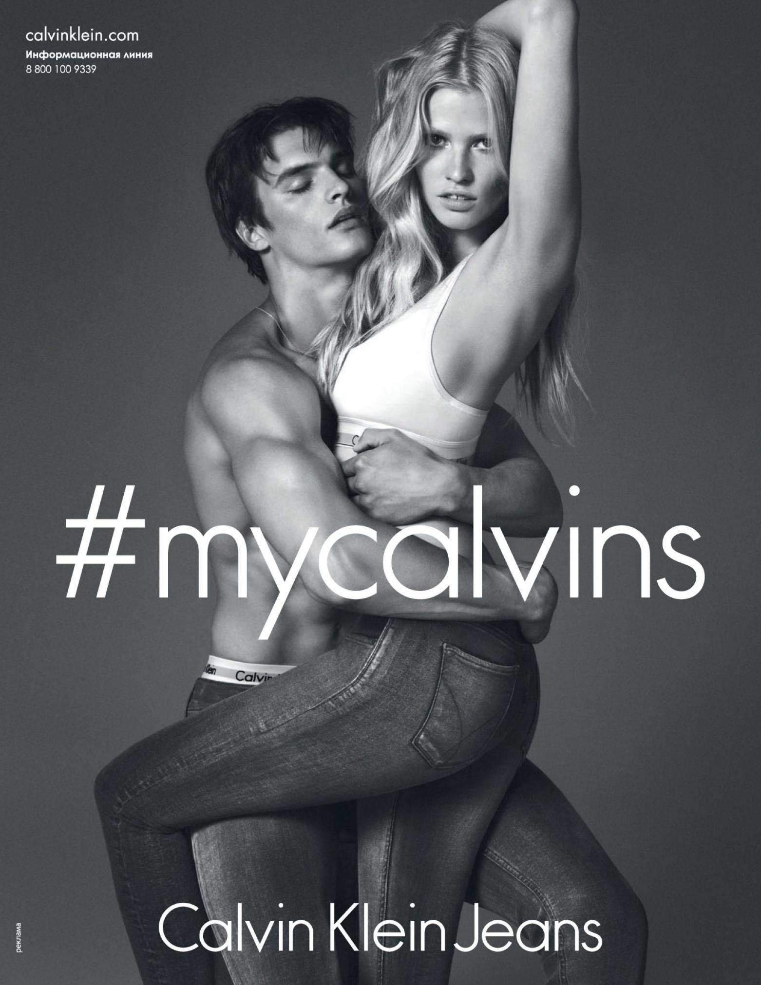 Back in Time-A new image from Calvin Klein Jeans’ fall/winter 2014 campaign has been released, starring once more model Matthew Terry and Dutch bombshell Lara Stone. Captured by Mert & Marcus in another black & white shot, the models recreate the vibe of legendary Calvin Klein’s ads from the 90’s, while stylist Grant Woolhead outfits the models in classic fitted jeans and logo-embellished underwear designs. / Hair by Paul Hanlon. Makeup by Mark Carrasquillo.