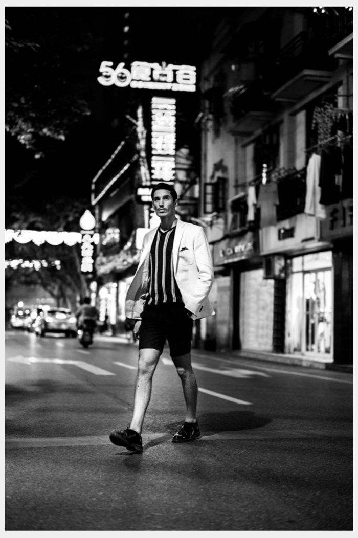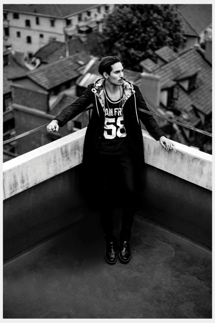 Visiting Shanghai–Photographed by Lucas Zhang, model Federico Gomez (Men Management Agency) travels to Shanghai. Taking in quite the surroundings, Federico is captured in black & white photography that showcases the model’s cool attitude. Also reflecting an eclectic style, Federico wears everything from tailored suits to a sports jersey, modeling fashions from Dsquared2, Givenchy, Saint Laurent, Balenciaga and Louis Vuitton, among other brands. / Photo assistance by Edison Jiang. Retouching by Wang Yi.