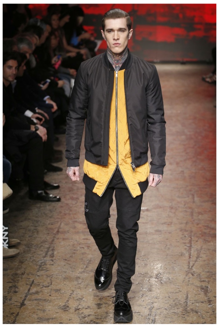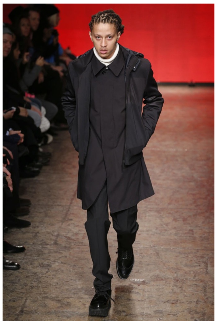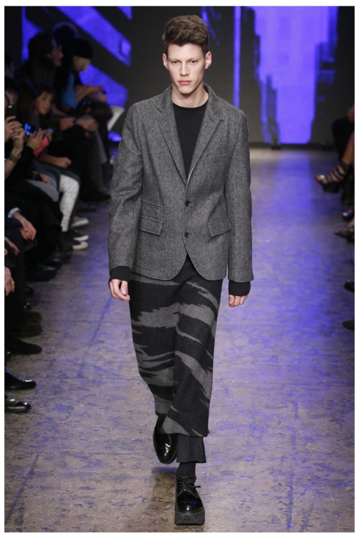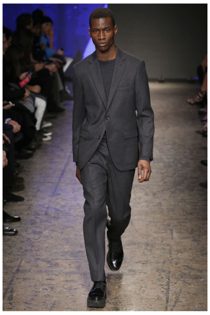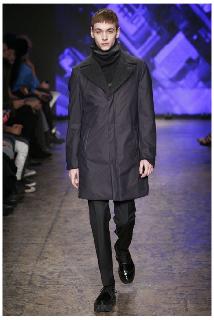 DKNY Men Fall/Winter 2014–Looking to home for inspiration, DKNY tackled the diversity of the Big Apple for a precise collection with an urban appeal. Applying a smart edge to young men’s essentials, relaxed proportions came out on top. From the bomber jacket to pleated trousers and long coats, DKNY enjoyed a series of winning looks. In fact, the label’s approach to fall/winter 2014 carried such an effortless cool, it’s easy to see DKNY’s current campaign star A$AP Rocky buying out the entire collection.