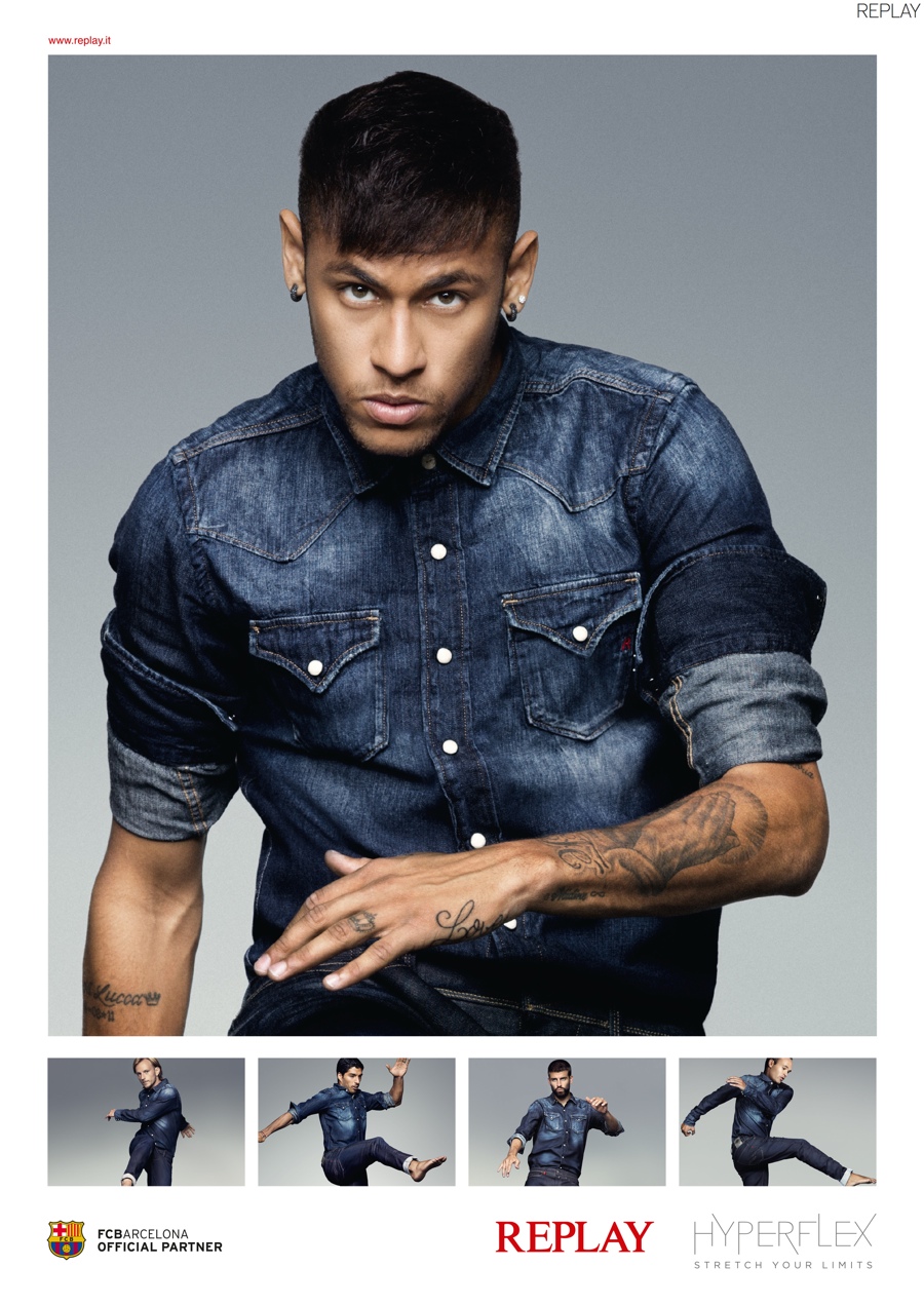 Replay Hyperflex-Italian fashion brand Replay enlists FC Barcelona football players Neymar Jr., Gerard Piqué, Luis Suarez, Andres Iniesta and Ivan Rakitic for its latest campaign, which features the brand’s performance denim. The perfect candidates to showcase the stretch and performance aspect of its Hyperflex denim, the FC Barcelona players strike quite the poses as they leap into action, kicking mid-air. Keeping its shape, Hyperflex denim provides 100% elasticity, adaptability and comfort with a lycra core of polyester covered by cotton.