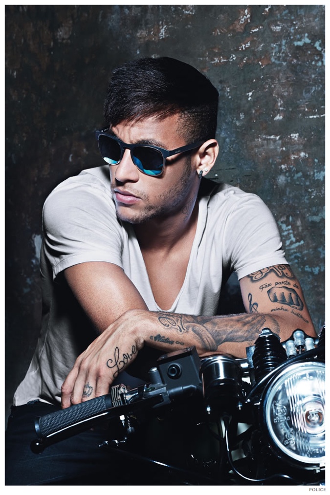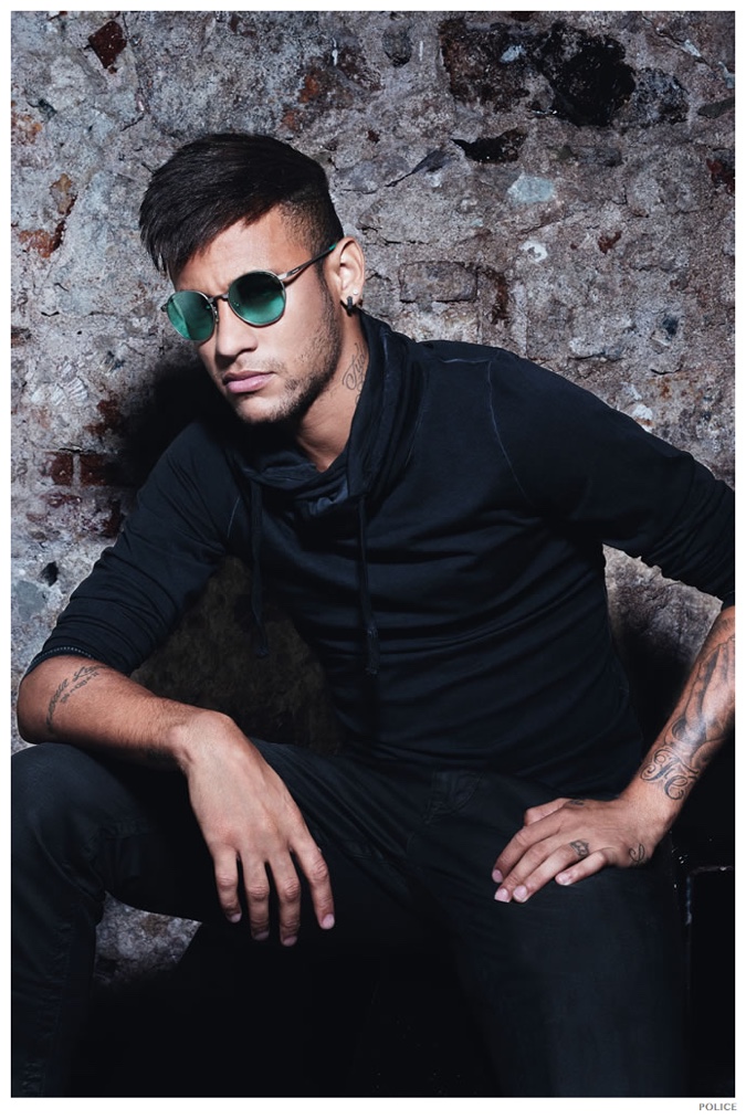 Neymar for Police-Reconnecting with eyewear label Police, Brazilian footballer Neymar Jr. fronts the brand’s spring-summer 2015 advertising campaign. Discussing the advertisement, Neymar shares, “For me, it was a pleasure to do this campaign again. I really liked the style of the shooting with the motorcycle and all the clothes, combined with the new sunglasses.” For the campaign, Neymar was shot by photographer Rankin, modeling Police’s styles that combine an urban attitude with classic design ideas revisited for the modern man.