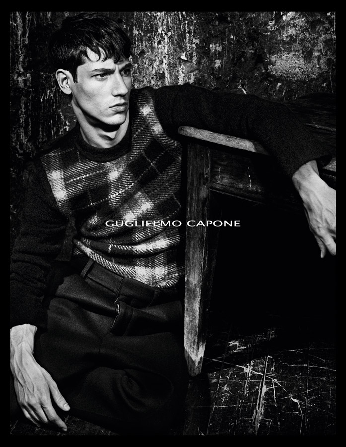 Guglielmo Capone Fall/Winter 2014 Campaign–Italian label Guglielmo Capone taps Argentinean model Nicolas Ripoll to front its fall/winter 2014 advertising campaign, styled by Andrea Tenerani. Captured in rich black & white photography that highlights the textures and color combinations of Guglielmo Capone’s latest collection, Nicolas poses for the lens of Bruno Van Mossevelde.