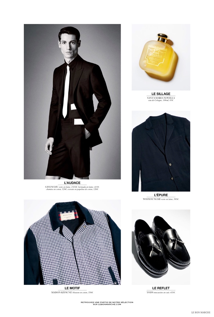 Luxury retailer Le Bon Marché calls on Bananas model Nicolas Ripoll to star in its new spring-summer 2015 menswear catalogue. Highlighting its latest offering of trim suits, sportswear, leather bags, timepieces and more, Le Bon Marché outfits Nicolas in a wardrobe that features labels such as Moncler, Valentino and Raf Simons.