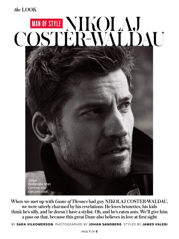 Game of Thrones Bad Boy-After appearing in a C for Men summer feature, Game of Thrones actor Nikolaj Coster-Waldau is back in the photo studio, posing for InStyle. Sitting for classic portraits, Coster-Waldau is photographed by Johan Sandberg and styled by James Valeri in garments from labels that include Ralph Lauren Denim & Supply and Giorgio Armani. Talking to the magazine about style, Coster-Waldau confesses “Oh, please don’t get mad when you find out I don’t have the first clue about (fashion)! I’ll grab shirts from the t-shirt pile.” Read more at InStyle.com.