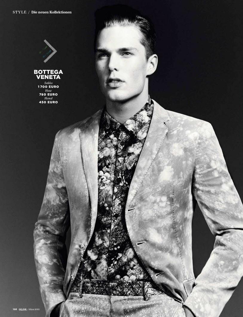 A Wearable Season–Photographed by Jem Mitchell, model Nils Butler graces the pages of the March 2013 issue of GQ Germany, appearing in a story that gives us a little preview about some of the boldest trends of the upcoming season. Styled by Tobias Frericks in Dries Van Noten’s metallic numbers, Tommy Hilfiger and Dolce & Gabbana’s striped designs and Bottega Veneta’s blooming prints, Nils is ready to face spring with an updated and always fashionable new wardrobe. / Grooming by Johnnie Sapong.