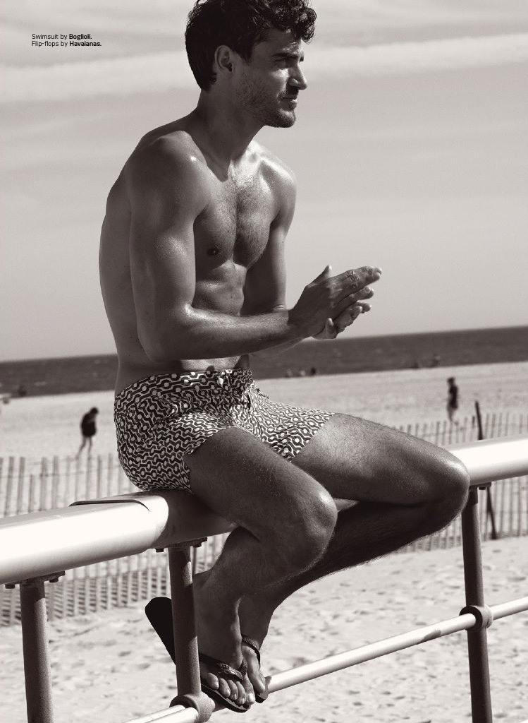 Details heads to the beach for its June/July 2015 issue. Staging a swimwear shoot, the magazine calls on models Arthur Kulkov, Clint Mauro, Jarrod Scott and Noah Mills to showcase the season’s best styles. Photographed by Robbie Fimmano and styled by fashion editor Matthew Marden, the boys take over the beach in swimsuits from the likes of Tomas Maier, Prada and Parke & Ronen. / Hair by Wesley O’Meara. Makeup by Emil Kaneko.