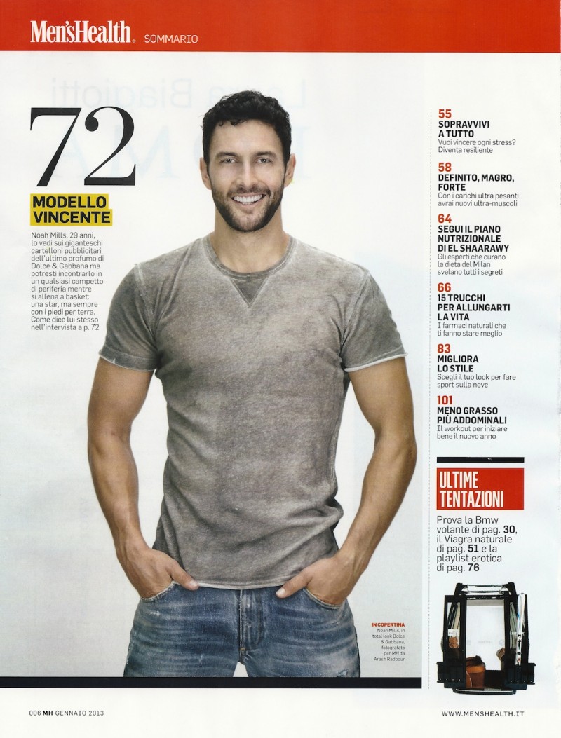 A Dynamic Day–For the cover story of Men’s Health Italia’s latest issue, photographer Arash Radpour focuses his lens on model Noah Mills during a dynamic basketball exercise. Clad in Dolce & Gabbana’s gym collection, Noah proves to be an endless source of energy, posing for active and sweaty images that highlight his passion for sports.