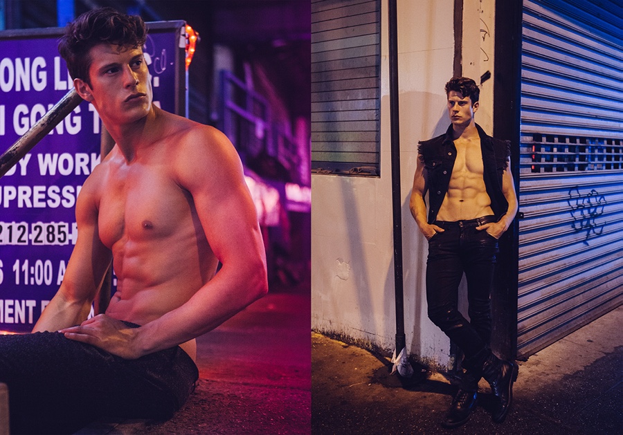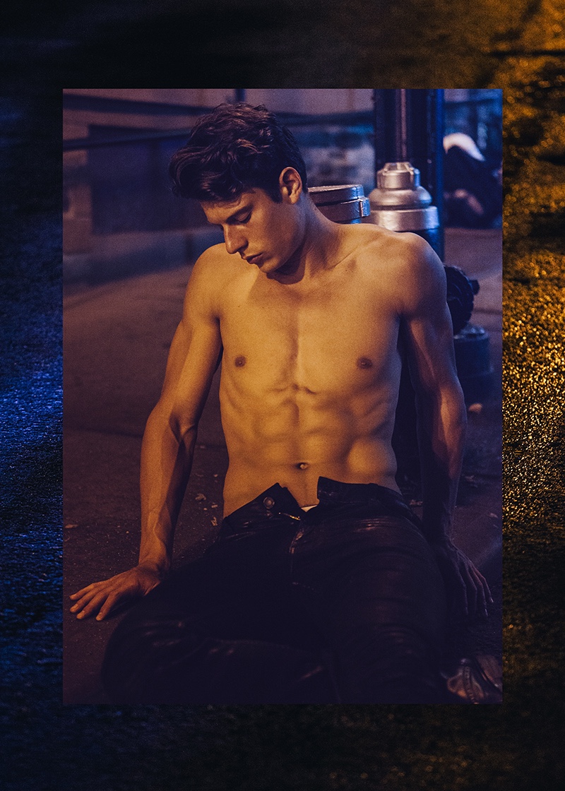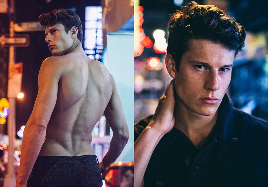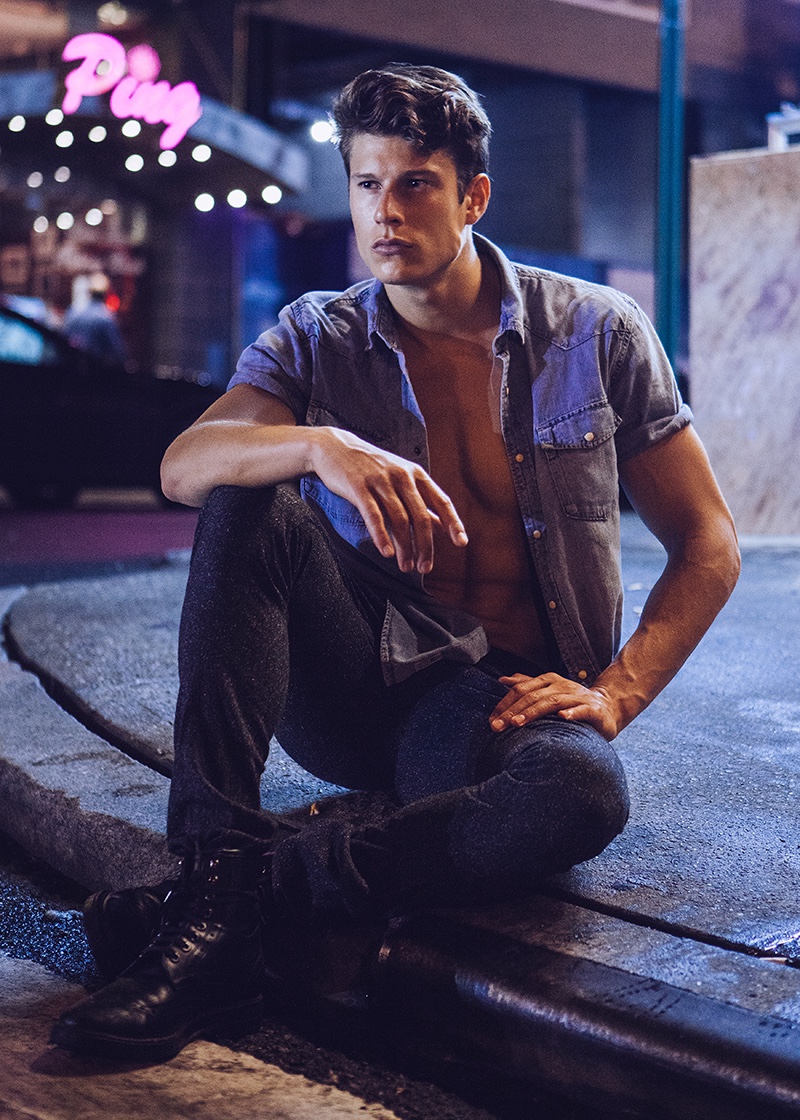 After a sporty evening workout with Devin Goda, photographer Erik Carter unveils the latest installment in his Nocturne photo series. Soul Artist Management model Eian Scully is the latest subject. Heading outdoors after hours, Eian takes the street by storm, posing in denim and other casual pieces from ASOS, Topman, Express, Coach and Robin’s Jean.