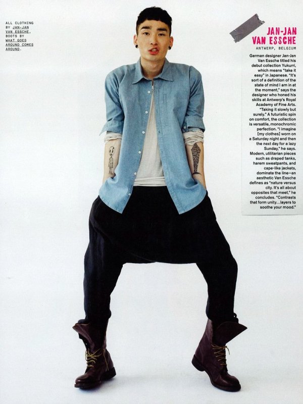 Styled by J Errico in looks from Siki Im, Katie Eary and Jan-Jan Van Essche, Red model Noma Han transforms into quite the globehopper. Photographed by Jolijn Snijders for a brief series of designer features by Caitlin Smith, Noma appears in the latest edition of Nylon Guys.