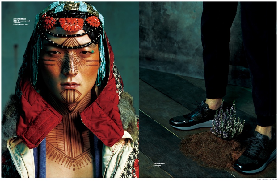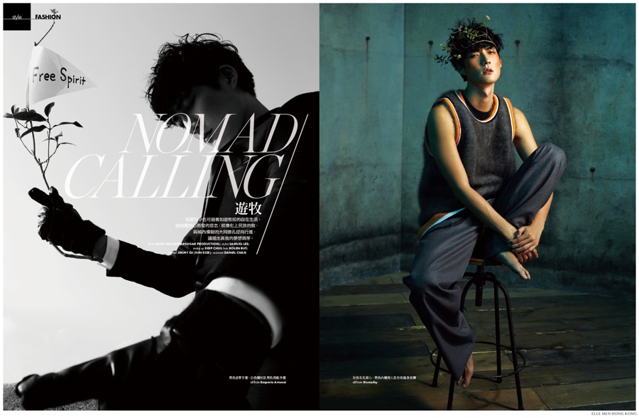 Nomad Calling–Elle Men Hong Kong continues to deliver, bold, engaging fashion imagery with its November 2014 issue. Following a fantastic September story, photographer Matt Hui and fashion director Samuel Lee reunite for a stunning nomad-inspired feat starring Jimmy. A mix of eclectic styles offer up a fun look at the season with garments featured from Saint Laurent, Givenchy and more. / Makeup by Deep Choi. Hair by Kolen But.