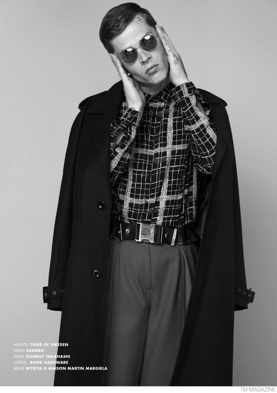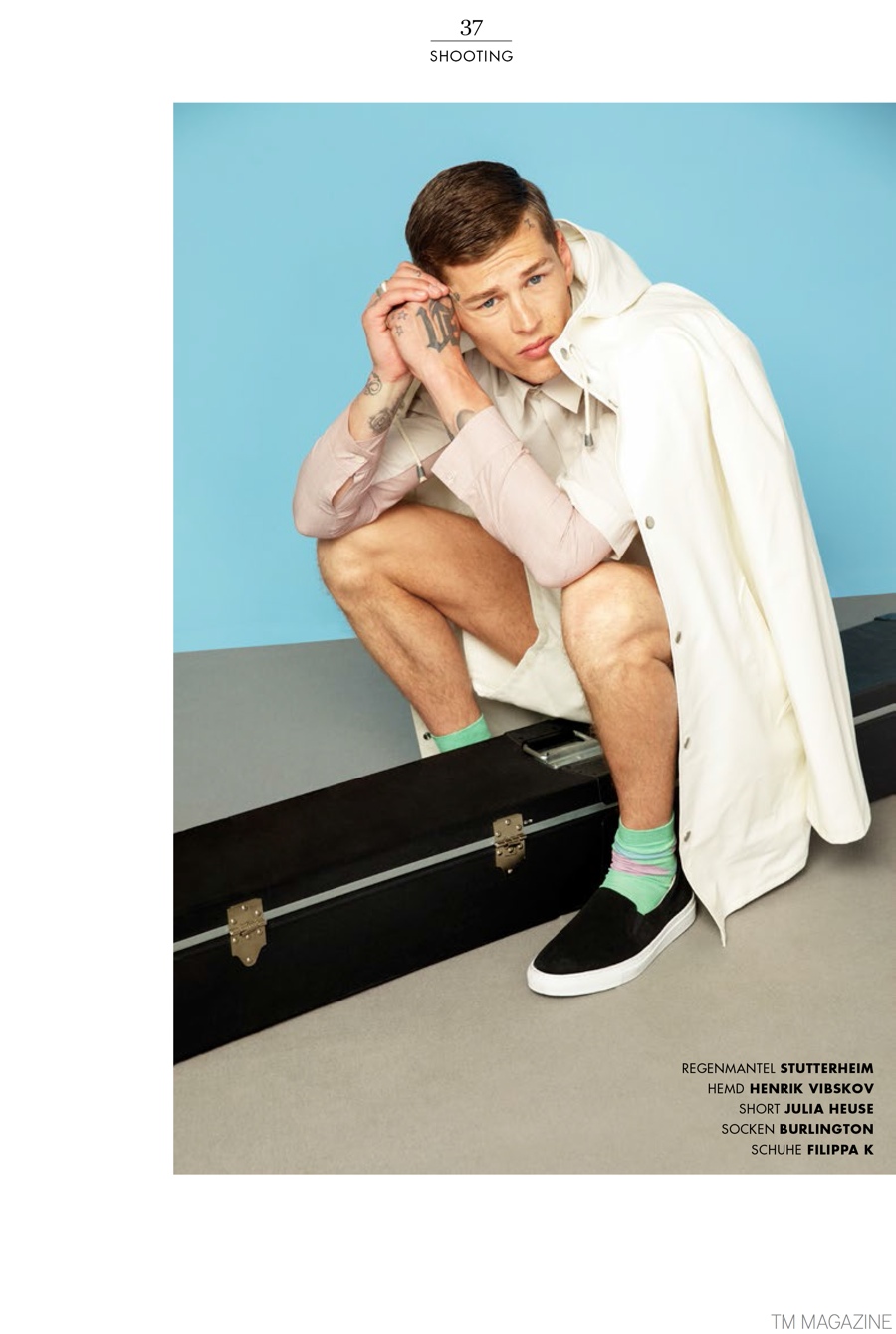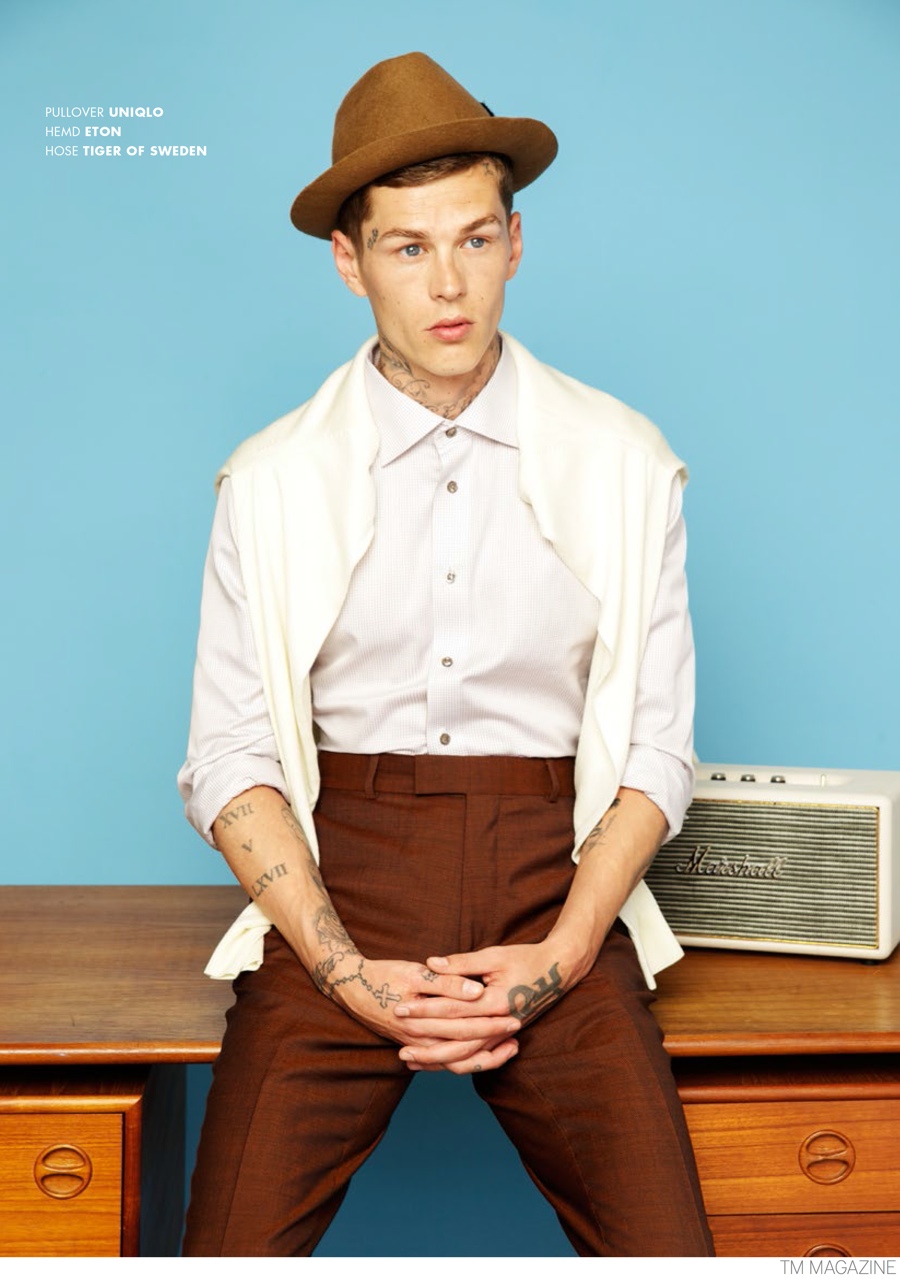 Age of Technicolor-Uno model Norman Theuerkorn earns his latest editorial with work in TM magazine. The tattooed model connects with fashion photographer Angelo Ghidoni for a colorful menswear outing. Wearing a variety of hues and modern proportions, Norman dons smart suiting, knitwear, quirky socks and more as styled by Alexandra Heckel. Labels for the bright outing include Karl Lagerfeld, COS, Sandro and Tiger of Sweden.