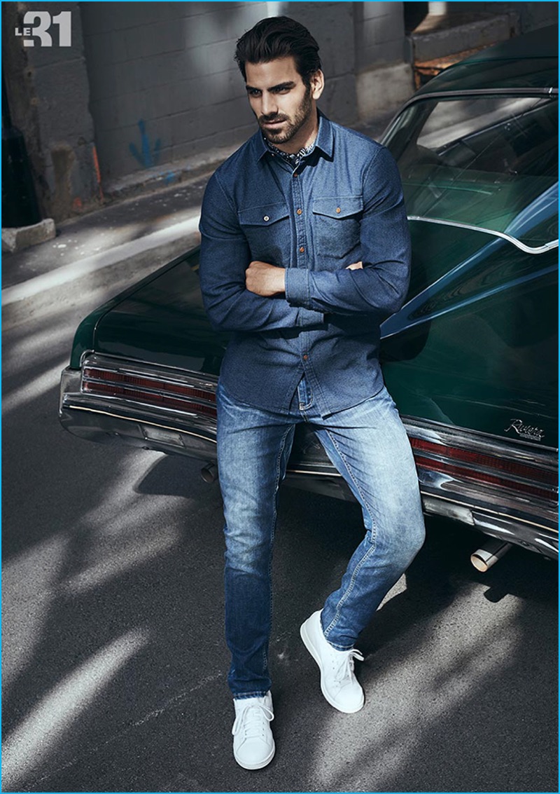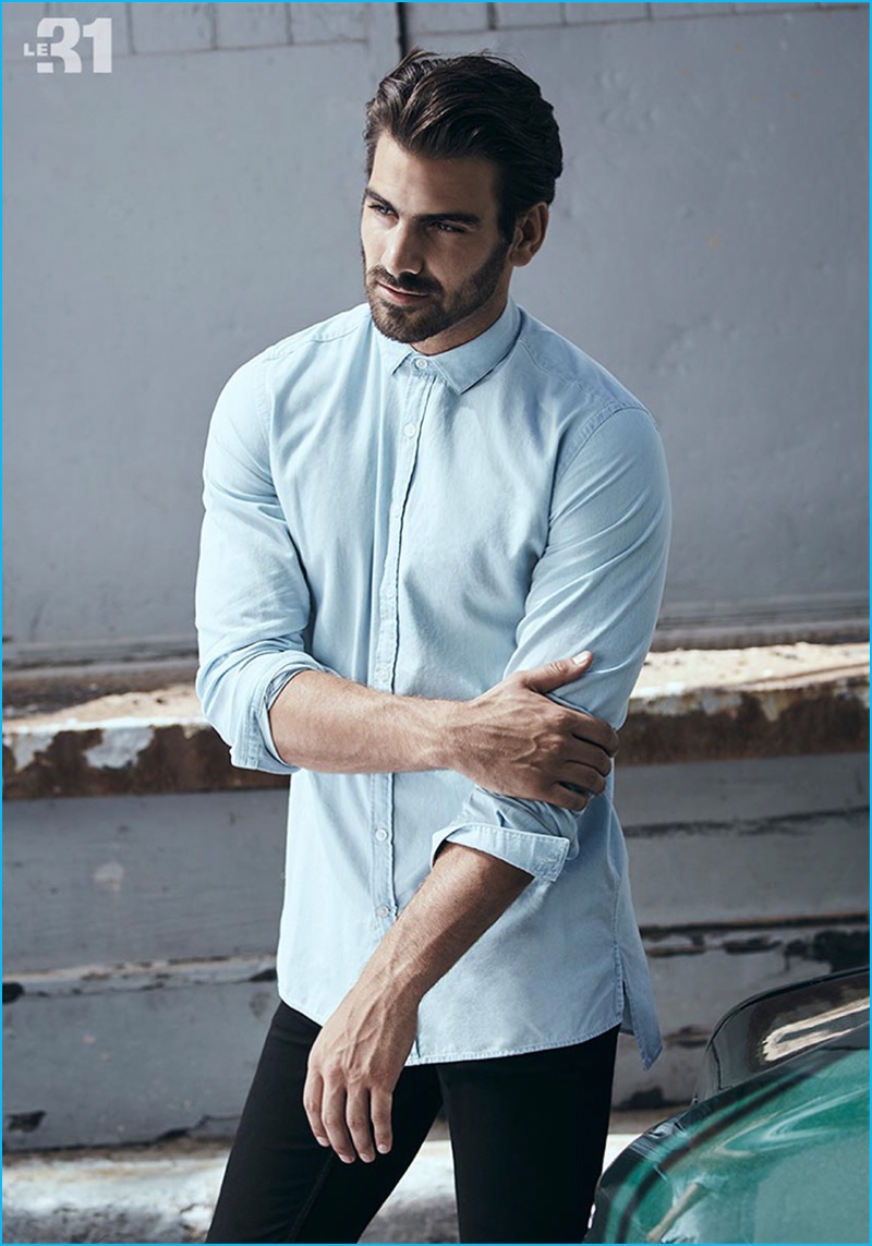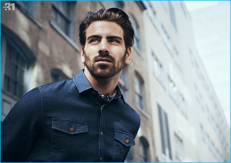 Simons taps Nyle DiMarco to star in its fall 2016 denim lookbook. The American model embraces denim and casualwear in indigo tones. Although laid-back, Nyle is a smart vision as he tackles fashions from Simons’ in-house brand, LE 31. Distressed denim and Pima cotton t-shirts are complemented by classics from brands such as Levi’s. Chambray also joins the mix with great shirting options.