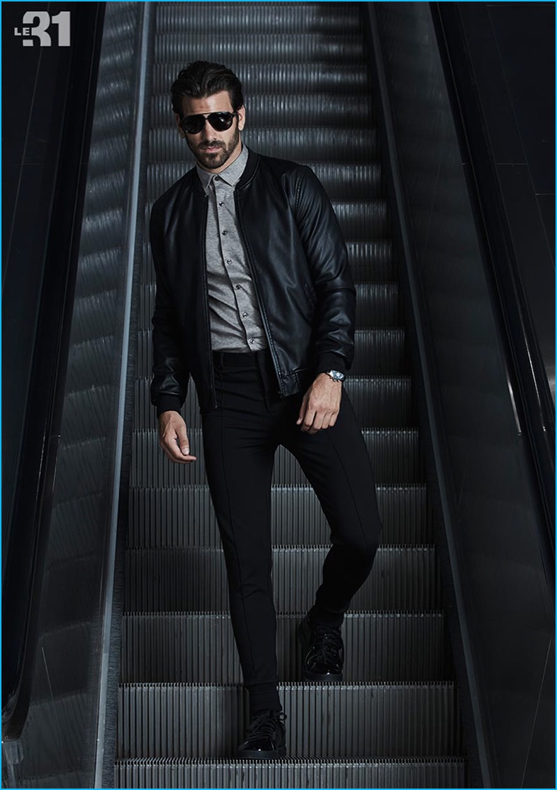 PinEmbracing cool travel style, Nyle DiMarco wears a faux leather bomber jacket, cotton shirt, and jersey traveler pants from LE 31 with Carrera signature aviator sunglasses from Simons.PinOn the move, Nyle DiMarco models a LE 31 solid traveler shirt and chambray wool cargo joggers with a Bosco semi-slim fit jacket, Matt & Nat weekend bag, and HUGO by Hugo Boss sneakers from Simons.PinModel Nyle DiMarco dons a mini-diamond indigo traveler shirt from LE 31 for Simons.PinStanding out in contemporary travel style, Nyle DiMarco models a LE 31 t-shirt, Projek Raw quilted vest, and Bosco semi-slim fit jacket with Ray-Ban aviator sunglasses and a Rudsak leather briefcase from Simons.