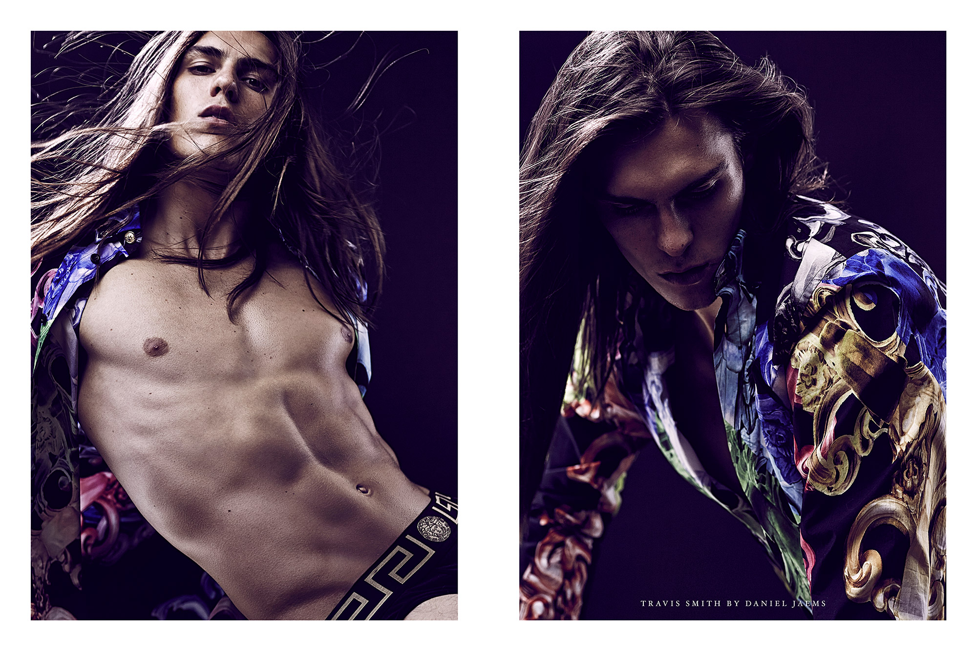 Obsession #7–Following his phenomenal spread for Attitude magazine, photographer Daniel Jaems focuses on his latest subject for his Obsession series. Hailing from Hawaii, model Travis Smith connects with Jaems, posing in Versace underwear and select garments. The series of images not only features Travis’ impressive build, but his long hair, which has helped him standout from the crowd. For more work from Travis, you can view him in the latest edition of L’Officiel Hommes Germany.