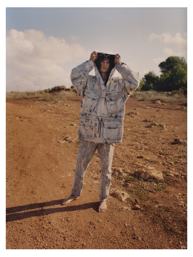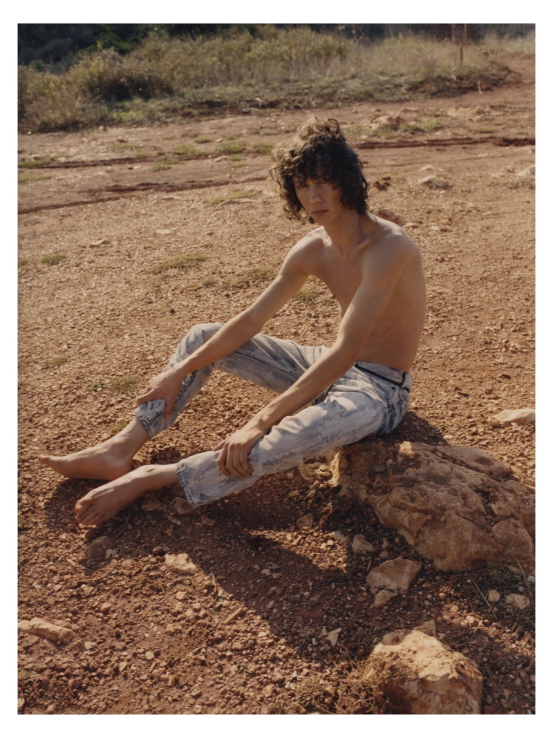 Off-White takes us to the desert for its resort 2019 denim campaign. The “Denim Program” kicks off with model Diogo Guerreiro embodying the Off-White man for the season. Ivan Ruberto photographs the curly-haired model. Making a denim-clad statement, Diogo models Off-White’s contemporary approach to the wardrobe staple. Statement pieces include treated jeans, sequined denim, and graphic jackets.
