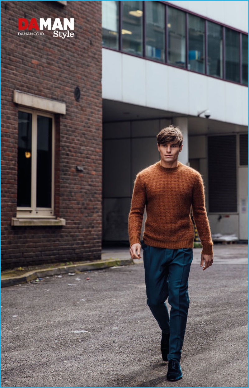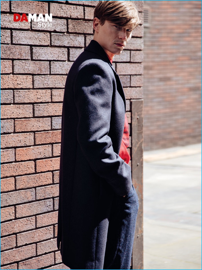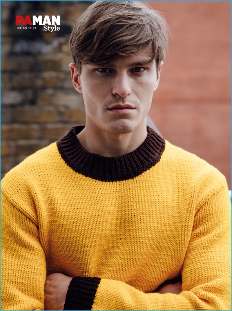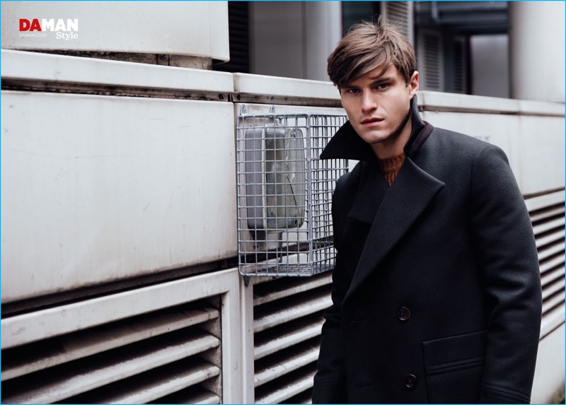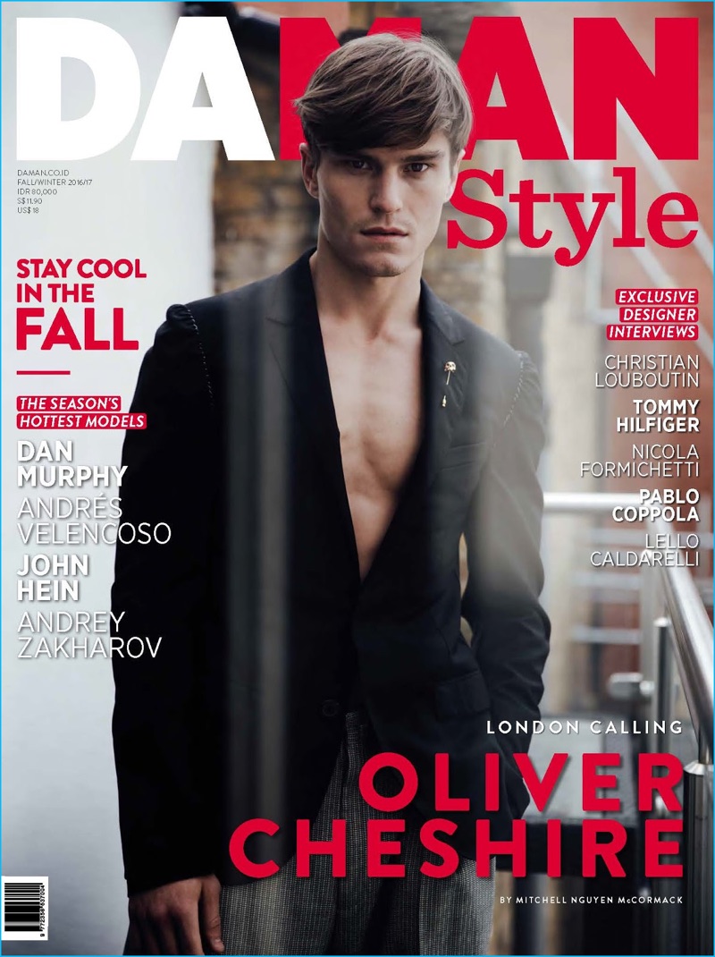 Oliver Cheshire joins Andres Velencoso as a cover model for Da Man Style’s fall-winter 2016 issue. The English model takes to the streets of London with photographer Mitchell Nguyen McCormack. The seasoned model tackles a variety of designer styles. Oliver’s charming wardrobe features brands such as Vivienne Westwood and Lanvin.