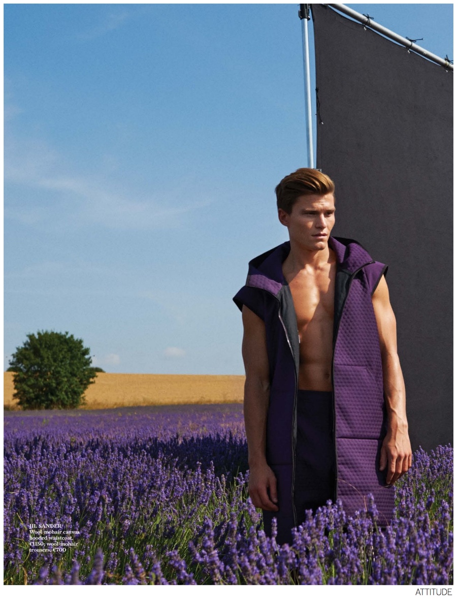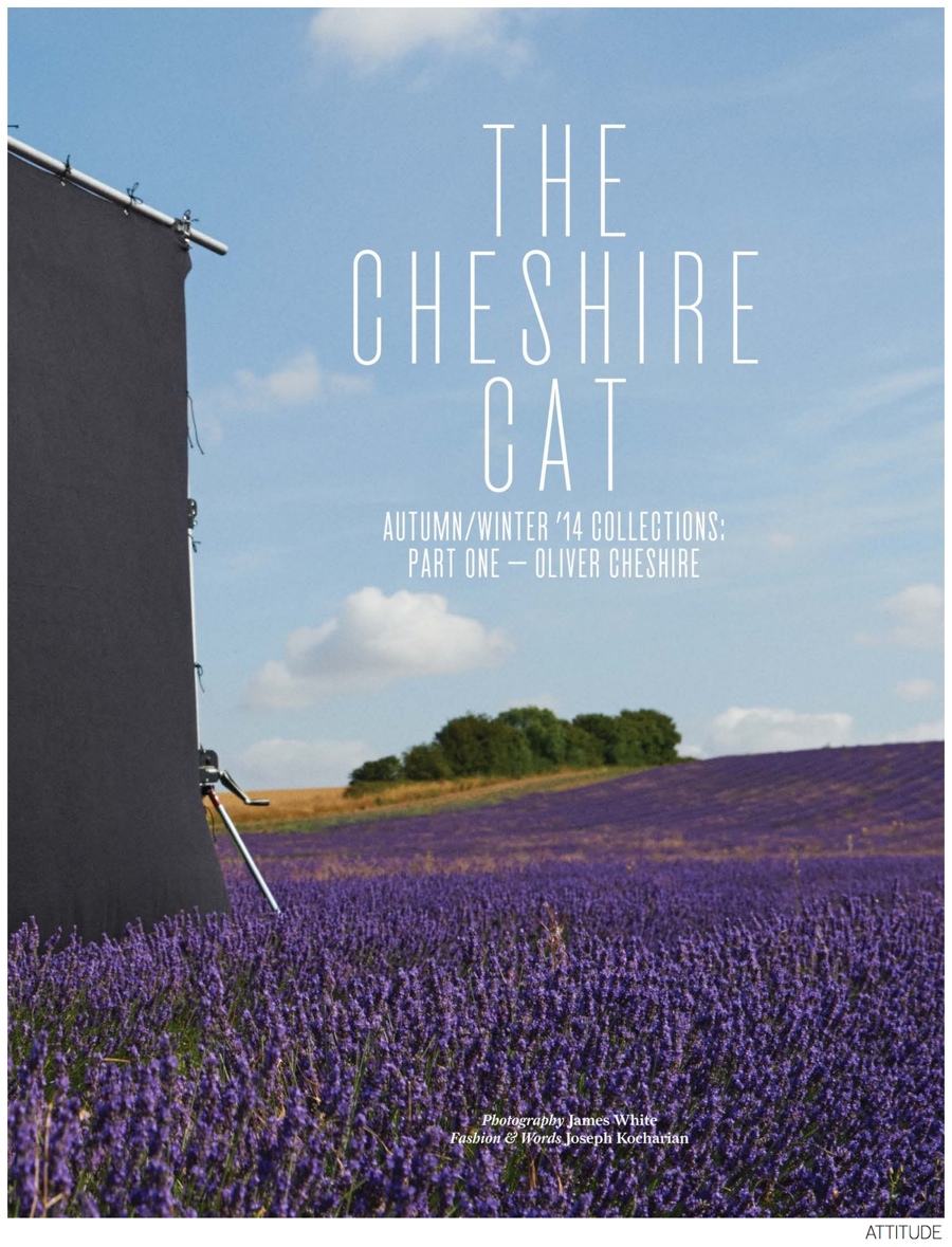 The Cheshire Cat-British model Oliver Cheshire lands the September 2014 cover of Attitude magazine. Photographed by James White, Oliver dons the fall 2014 collections, while captured on location at Hitchin Lavender Farm. Outfitted in choice pieces by stylist Joseph Kocharian, Oliver wears striking looks from luxury labels that include Lanvin, Dior Homme and Balmain.
