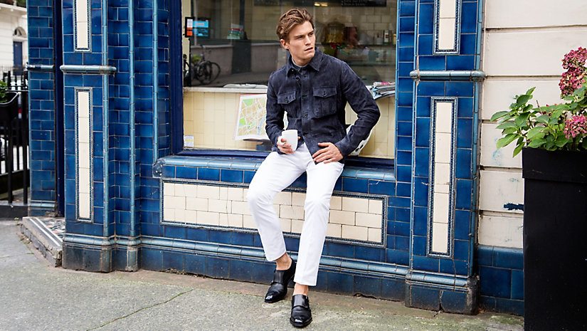 For a more formal look, Oliver adds, “If I’m going out for dinner, a textured double-breasted suit with smart shirt or T-shirt. I also love wearing Chelsea boots as they are great for this time of year and go with almost anything.”
