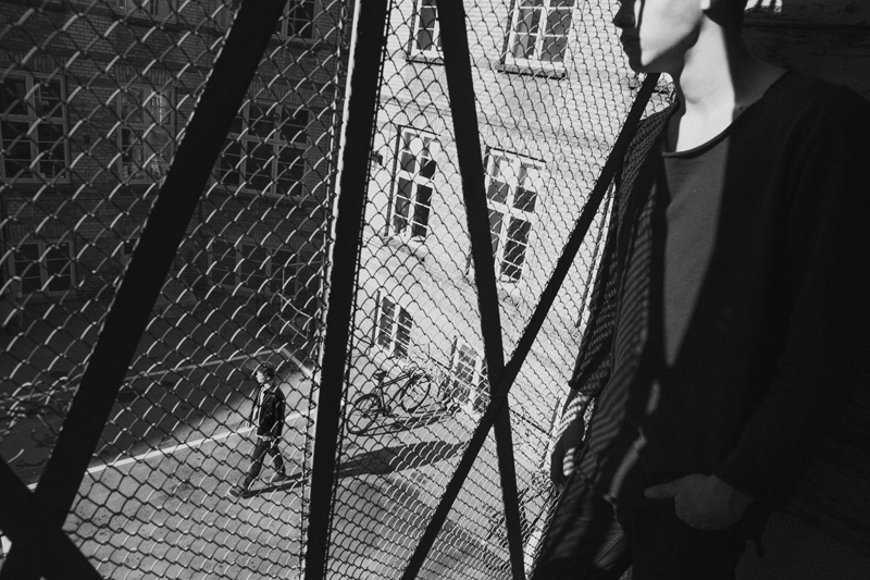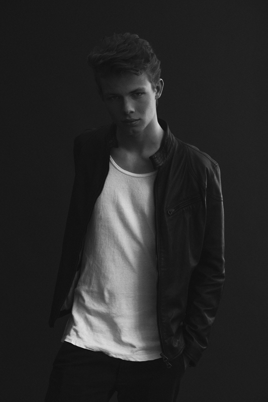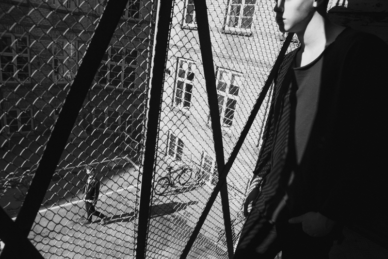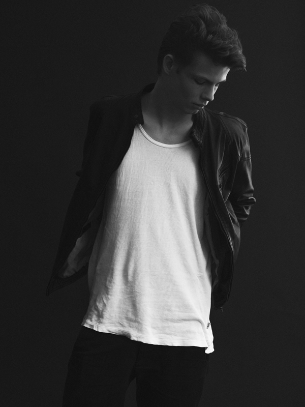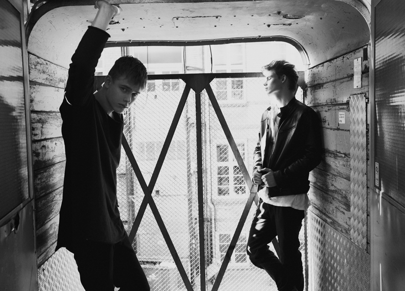 Out of the Dark–Scoop models Oliver Sandahl and Simon Blom star in this black & white photo series lensed by Mikkel Suppras. Wearing their own clothes, the young models appear in a mysterious setting, that could look like a borstal, where the pair spend their troubled youth. Dressed in basic tees, jeans and leather jackets, the boys perfectly fit in the role of rebellious boys, providing striking poses and almost aggressive gazes.