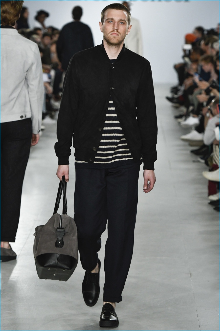 Oliver Spencer channels an effortless attitude of leisure for his spring-summer 2017 collection. Looking to the island of Capri and the famed house of Casa Malaparte for inspiration, Spencer delivers quite the lineup. As a result of this season’s Italian references, the collection embodies a juxtaposition of casual silhouettes and an elegant air.
