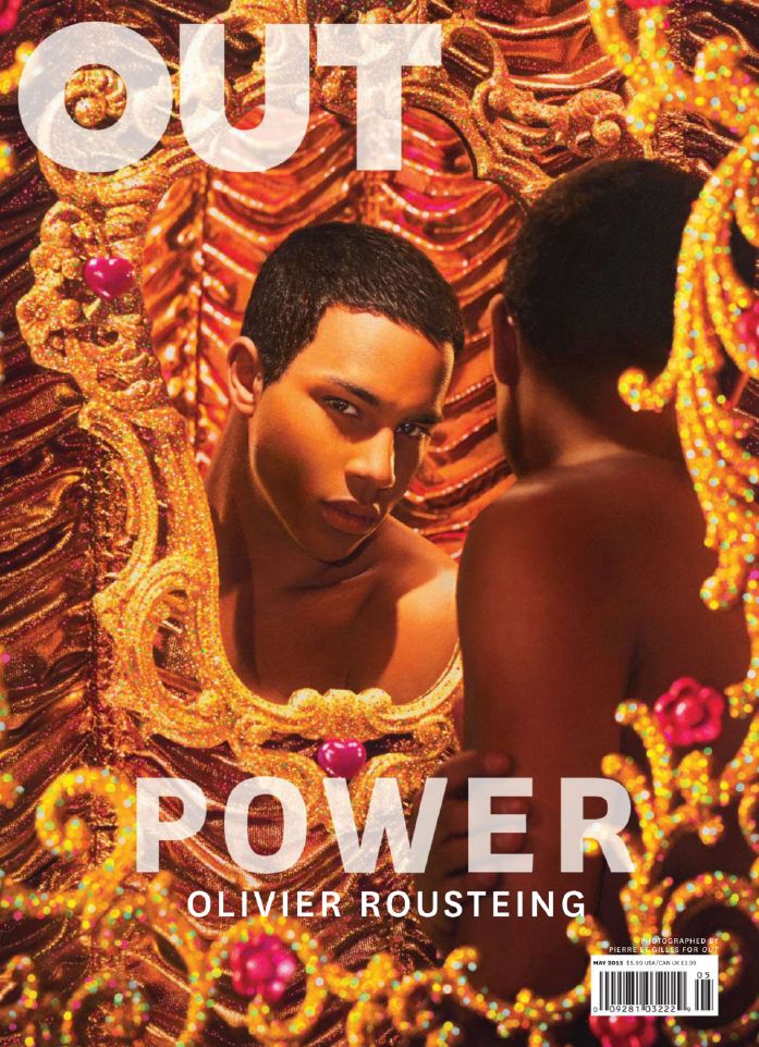 Balmain creative director Olivier Rousteing follows up his nude Tetu cover with a new feature for the May 2015 issue of Out magazine. The young designer delivers an opulent cover photo by Pierre et Gilles. Addressing his love for social media and his Instagram account that currently boasts over one million followers, Rousteing explains, “People post on my Instagram that they are so happy to see black boys and girls. I’m happy that they see it. Comments on my Instagram are more important than what critics say.”