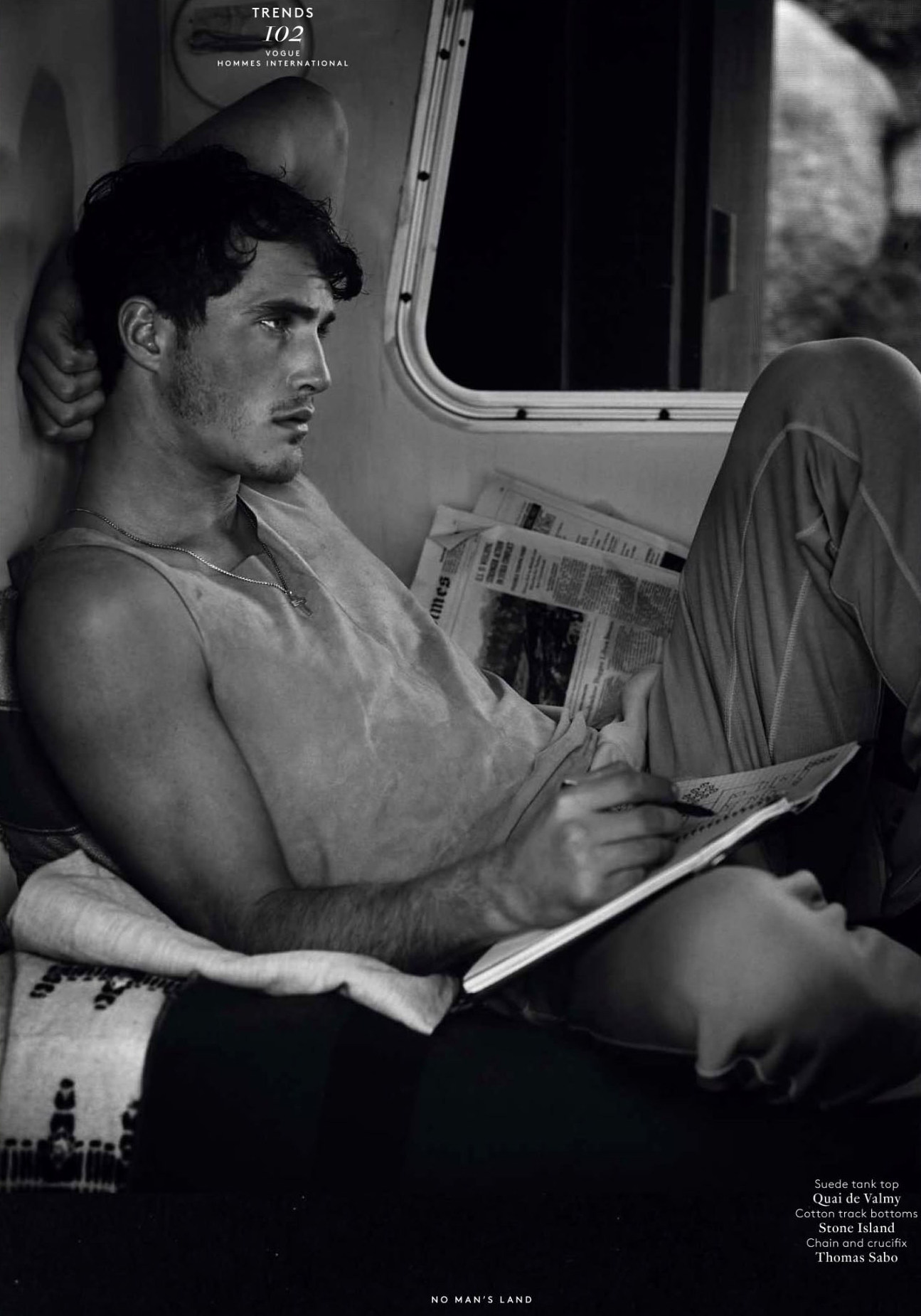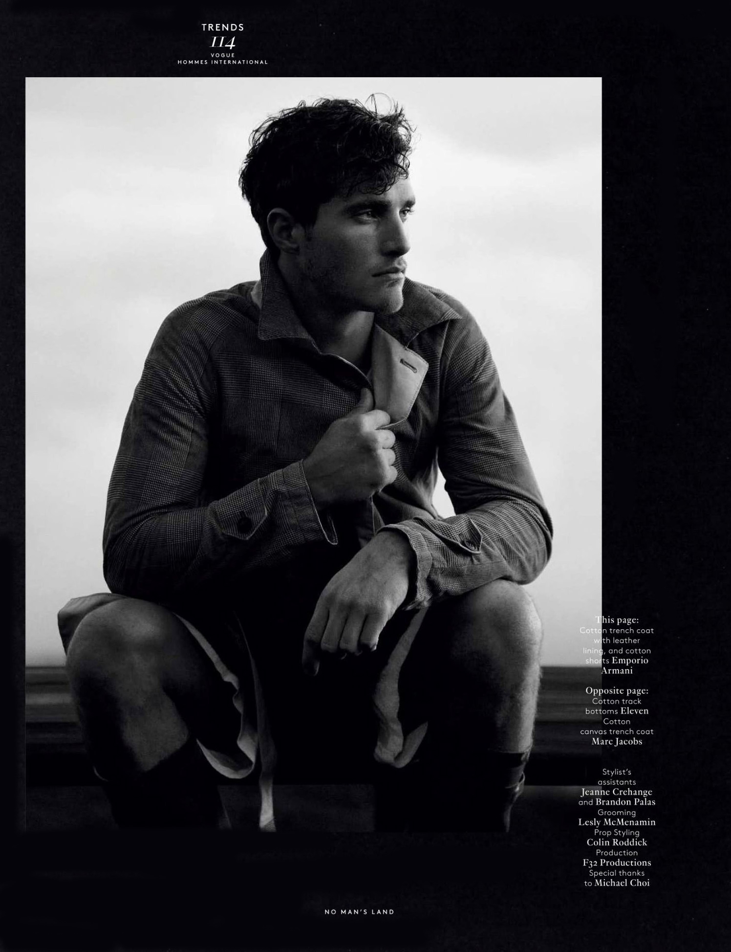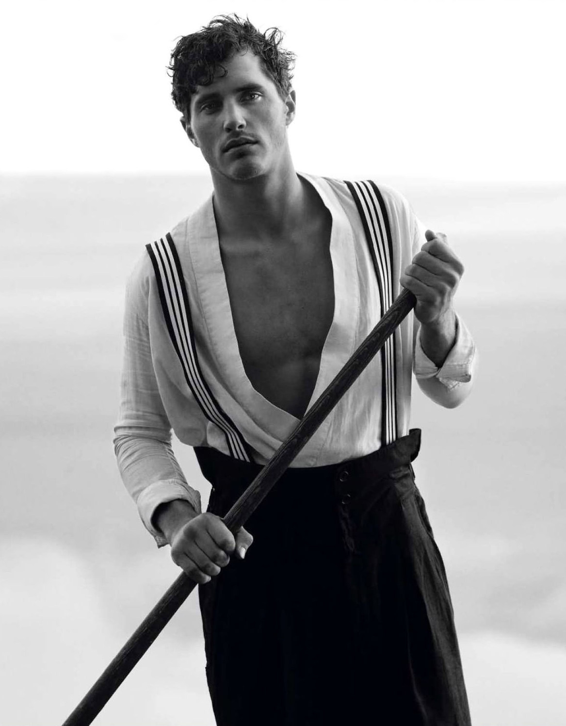 Into the Wild–Photographed in the middle of an untamed nature, Ford Europe model Ollie Edwards graces the pages of the spring/summer 2013 issue of Vogue Hommes International, for a charming black & white spread. The British model poses for Mark Segal’s lens in casual and laid-back designs from the likes of Emporio Armani, Balmain and Louis Vuitton, selected by stylist Azza Yousif. / Styling assistance by Jeanne Crehange and Brandon Palas. Grooming by Lesly McMenamin.
