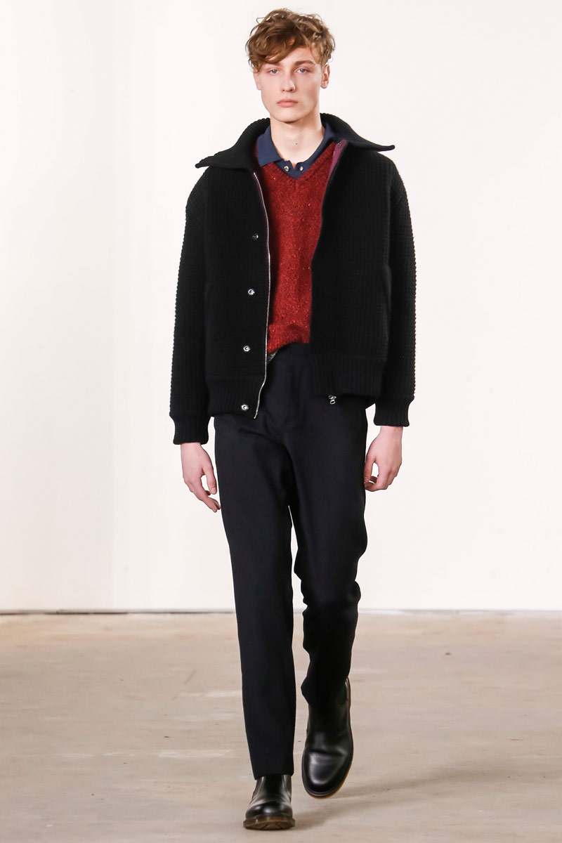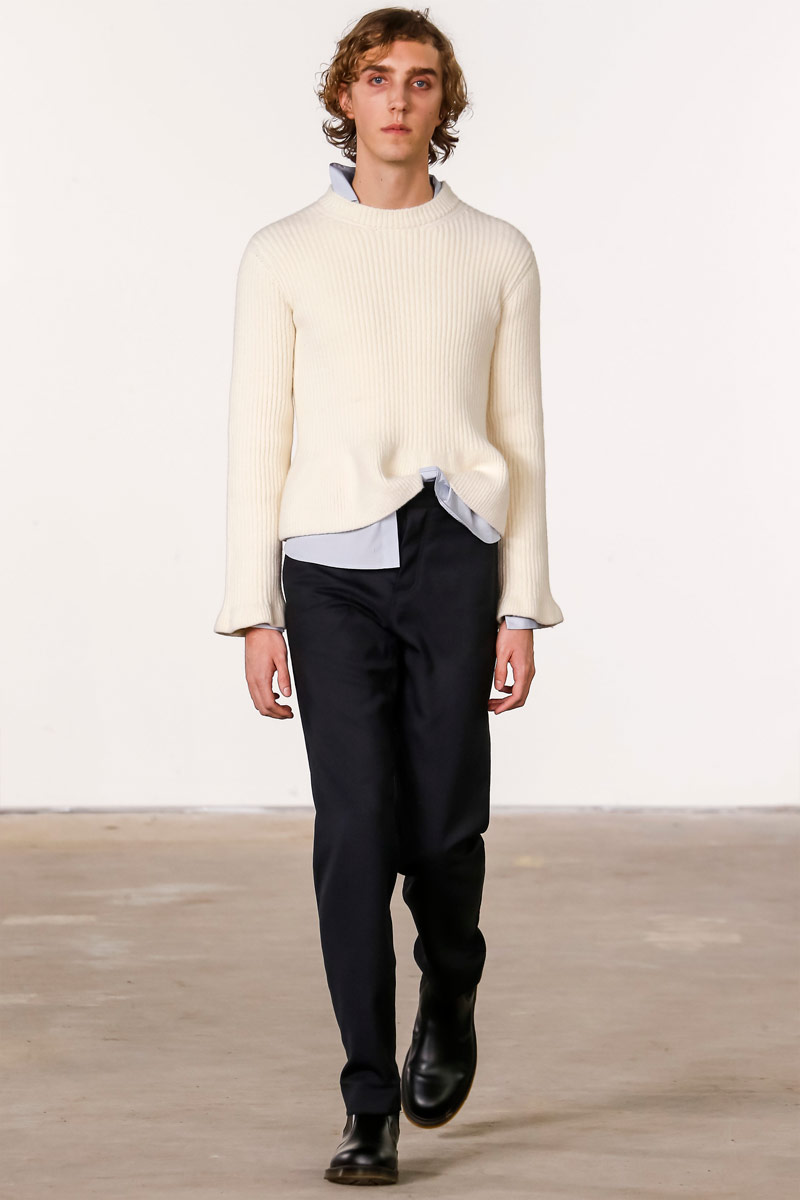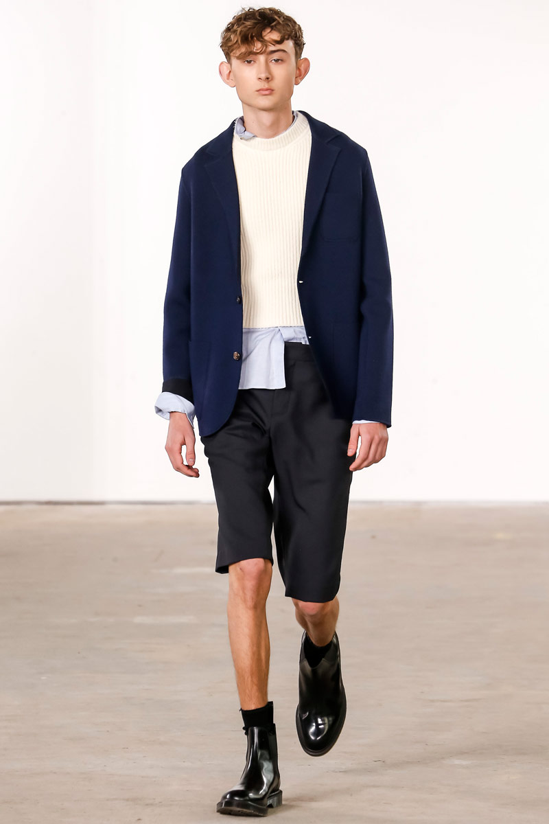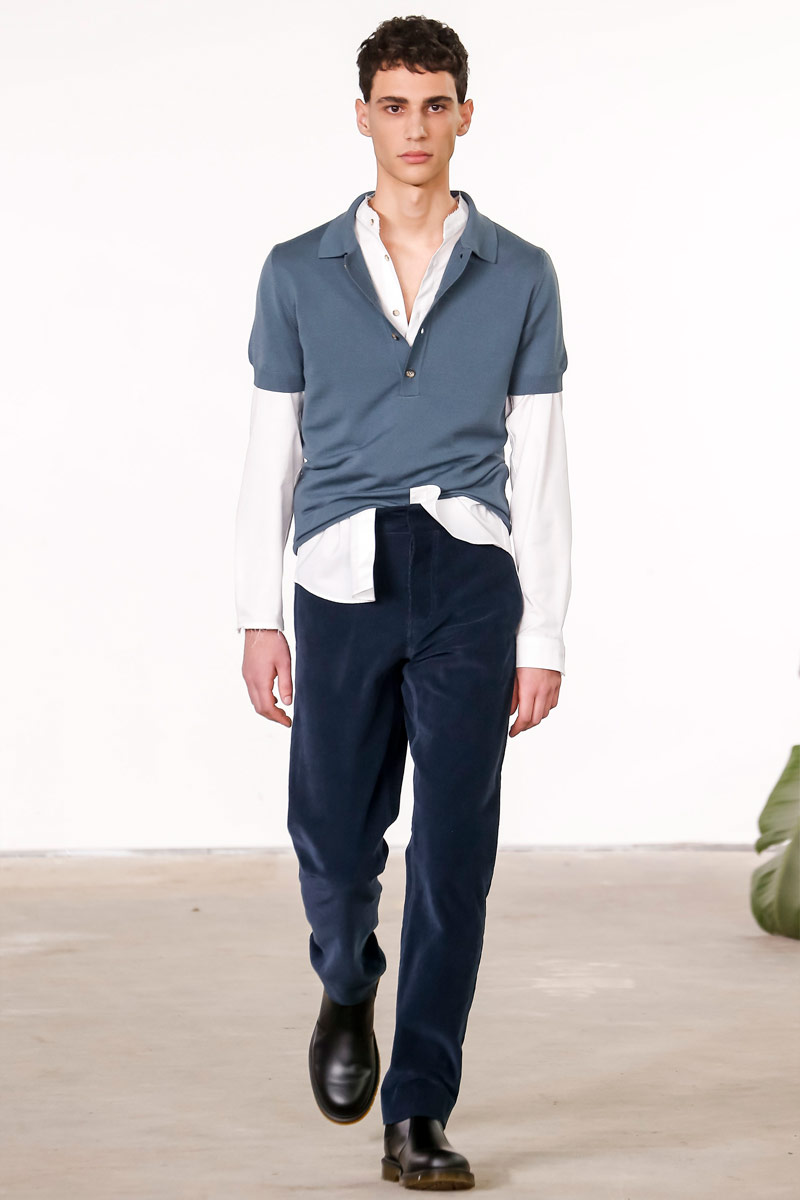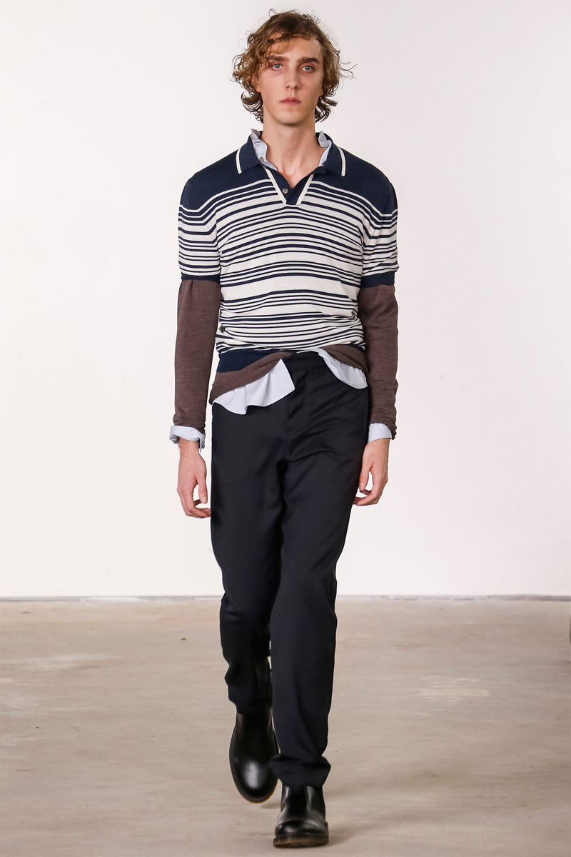 When it comes to Orley, geek is the new cool. Approaching their fall-winter 2016 collection, designers Alex, Matthew and Samantha Orley explored the season’s narrative with knitwear. The results revolved around a time tested formula of men’s essentials. Layered for an easygoing offering, Orley’s lineup included shrunken knit sweaters, turtlenecks, fitted vests and knit jackets. Paired with shorts, relaxed trousers and oxfords, the label rounded out fall’s strong collection with an irresistible selection of polo shirts that ranged from solid and striped to printed with a touch of nature.