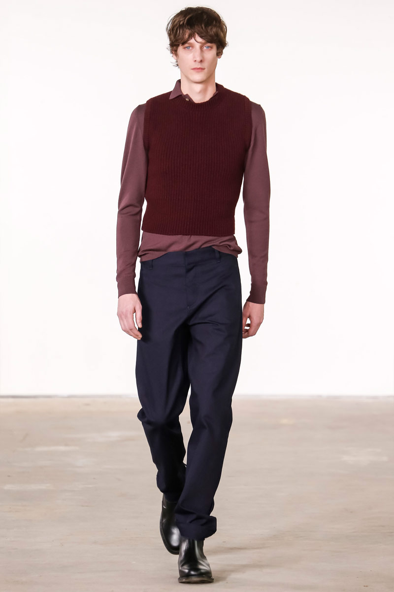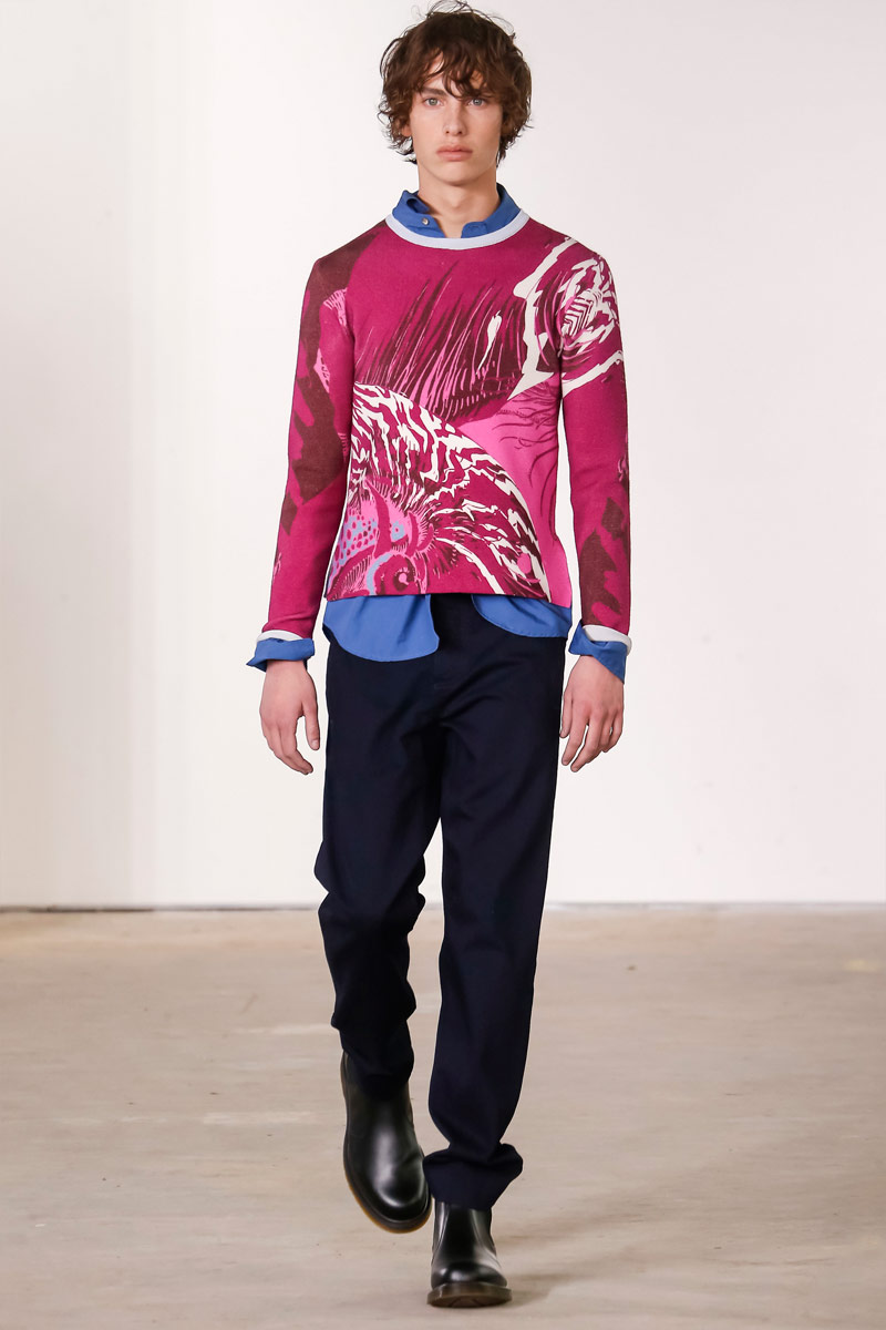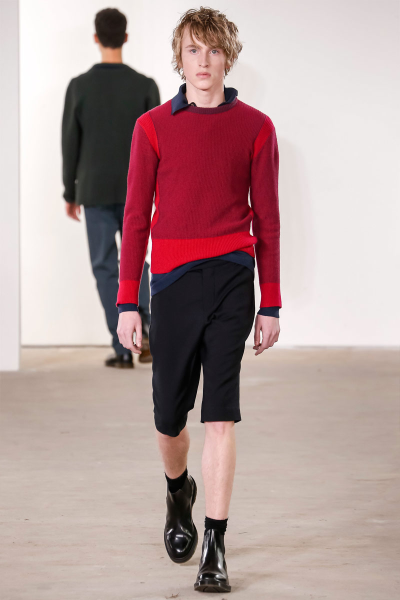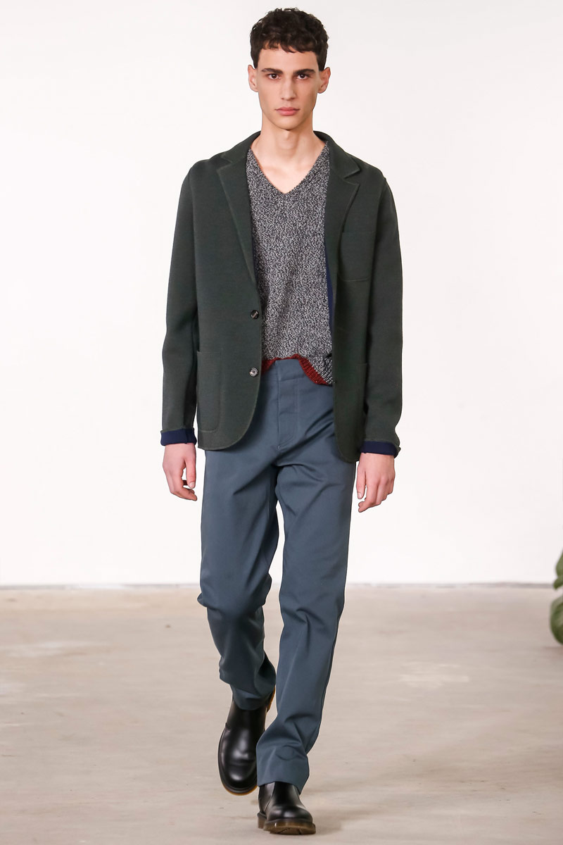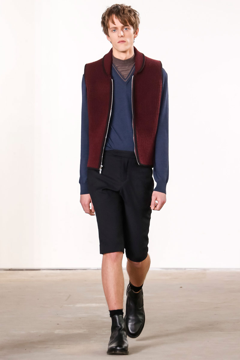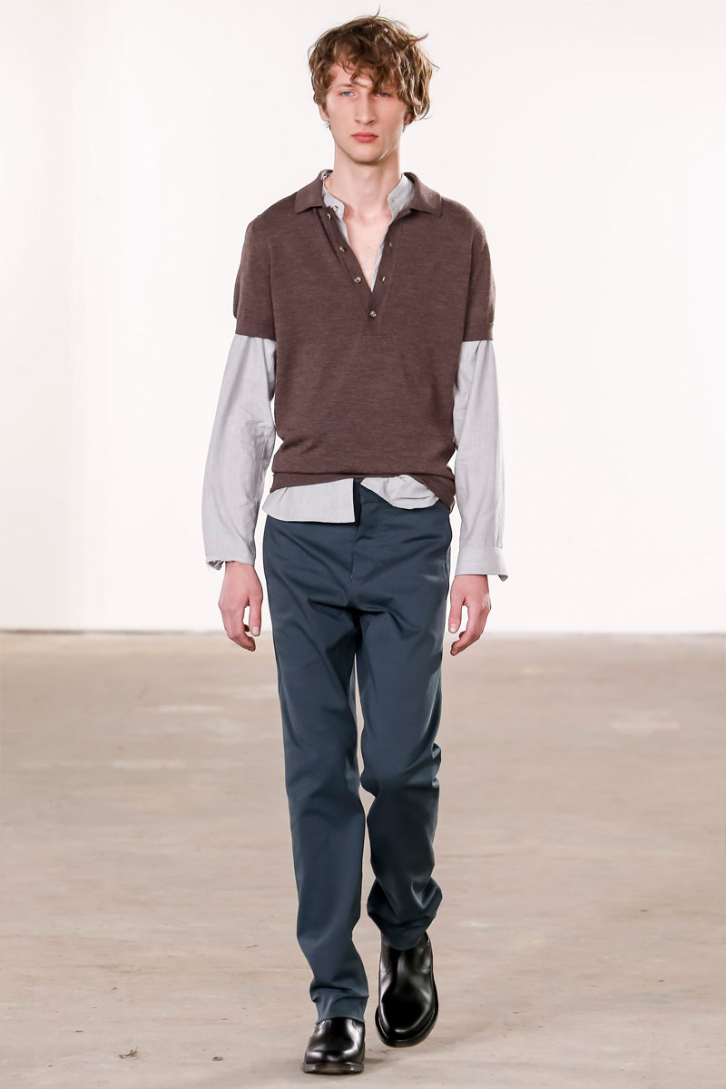 When it comes to Orley, geek is the new cool. Approaching their fall-winter 2016 collection, designers Alex, Matthew and Samantha Orley explored the season’s narrative with knitwear. The results revolved around a time tested formula of men’s essentials. Layered for an easygoing offering, Orley’s lineup included shrunken knit sweaters, turtlenecks, fitted vests and knit jackets. Paired with shorts, relaxed trousers and oxfords, the label rounded out fall’s strong collection with an irresistible selection of polo shirts that ranged from solid and striped to printed with a touch of nature.