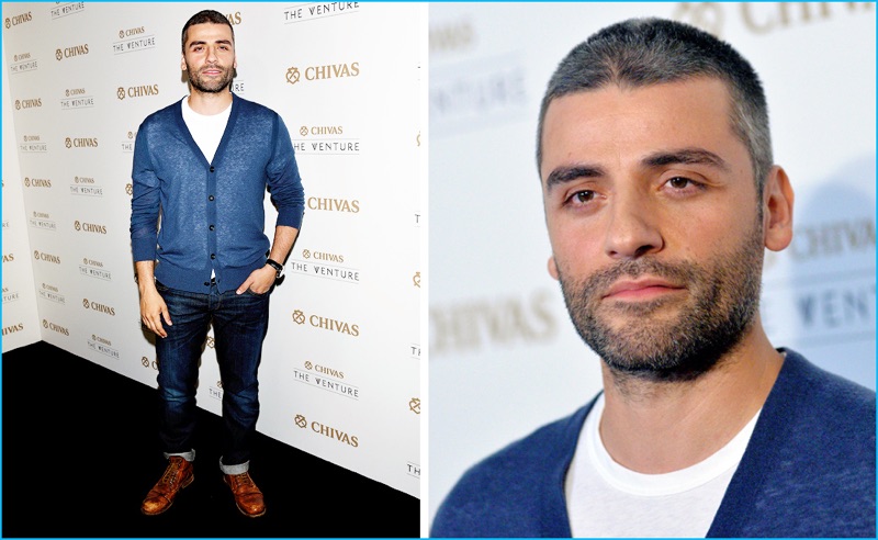Star Wars: The Force Awakens actor Oscar Isaac recently attended Chivas’ The Venture Final Event in New York City. Going casual for the occasion, 37-year-old actor wore a laid-back look from Rag & Bone. Embracing a low-key ensemble, Isaac posed for images, wearing a Rag & Bone Miles cardigan with a classic tee and Fit 2 jeans in dark vintage, from the brand’s Standard Issue line. Isaac completed his relaxed outfit with rugged brown leather boots.
