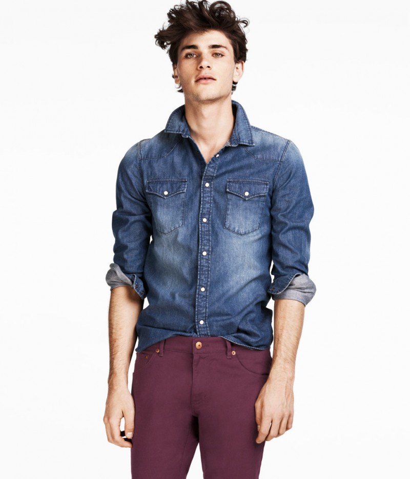 Spring’s Essentials–Clad in printed cotton tees, sweatshirts, skinny jeans and denim shirts, model Oscar Spendrup enters the studio to showcase some of the basic essentials included in the spring 2013 collection of Swedish fast fashion giant H&M. Playing with colors, Oscar sports simple garments designed for the brand’s youngest consumers.