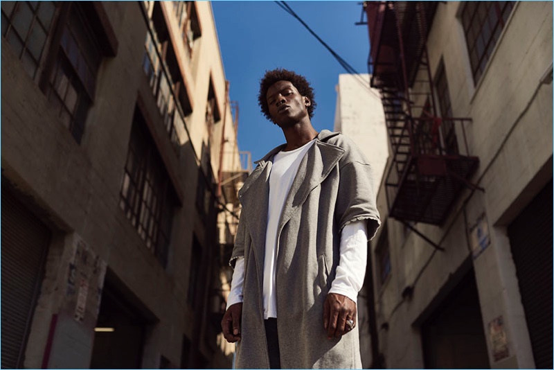 PinTaking to a city rooftop, Bradley Soileau wears a monochromatic number from Other UK.