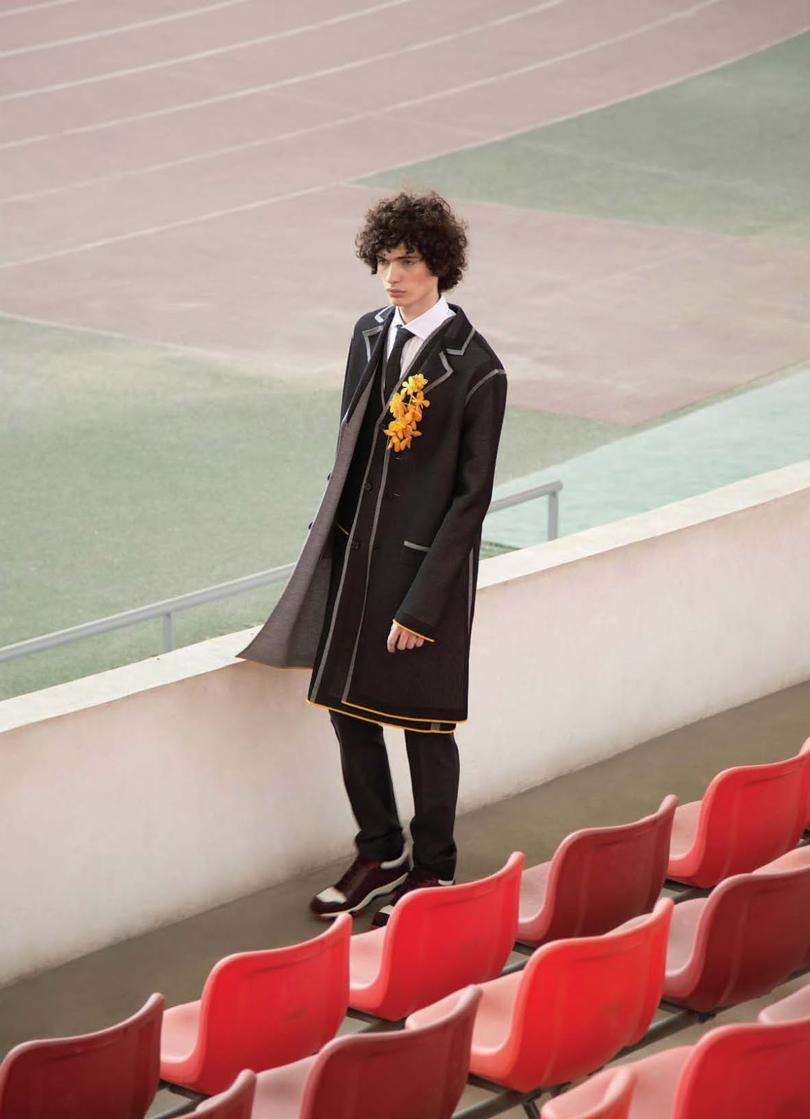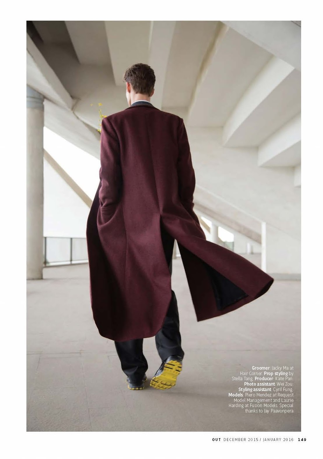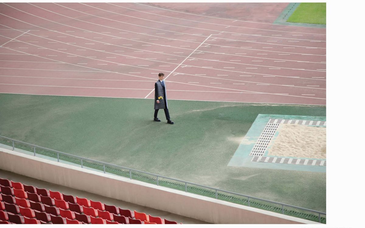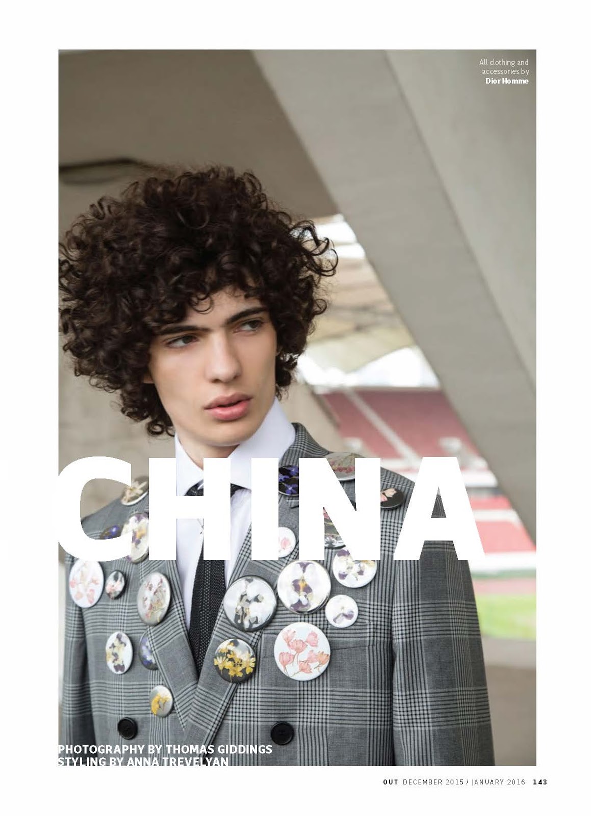Recalling Dior Homme’s runway show in Shanghai, OUT travels to China for an editorial featured in its December 2015/January 2016 issue. Models Laurie Harding and Piero Mendez link up with photographer Thomas Giddings for a story shot on location at Foshan’s Century Lotus Stadium. Embracing the dapper attitude of the Dior Homme man, the pair is outfitted by stylist Anna Trevelyan in pieces from the Parisian brands fall-winter 2015 collection.