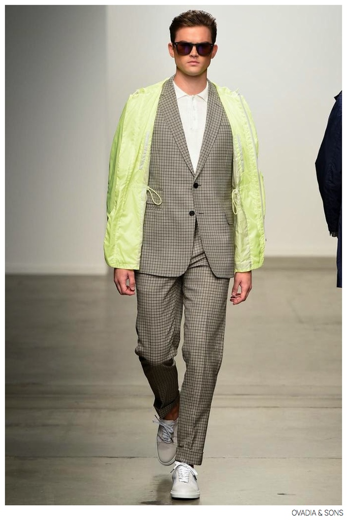 A print typically associated with the colder seasons, Ovadia & Sons repurposed houndstooth for its latest outing during New York Fashion Week. Offering a spring for the modern gentleman who aims to impress with his well-rounded wardrobe, this collection didn’t disappoint. Trench coats, suiting and even the bomber jacket were decorated with a houndstooth print. Transitioning into a trim, the classic print gave way to splashes of vibrant camel, timeless plaids and a thoughtful feather motif.