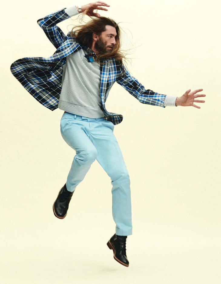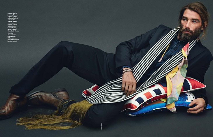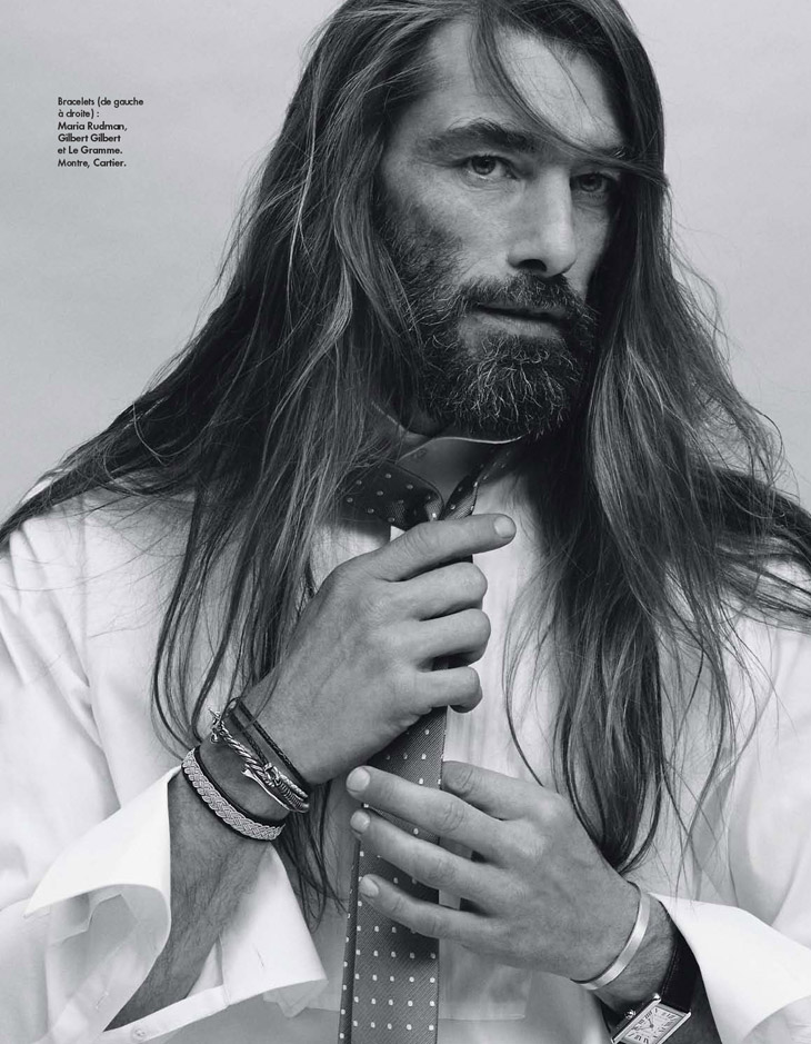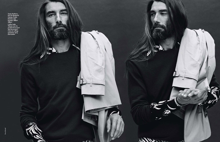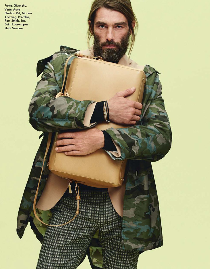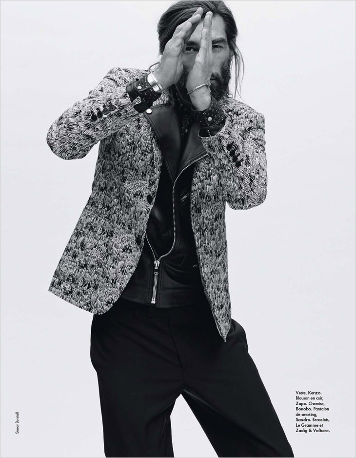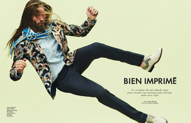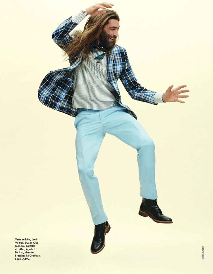 Bien Imprime–Appearing in the latest issue of Elle Man France, model Patrick Petitjean proves that he still possesses that special it factor with a stunning new spread photographed by Simon Burstall. Keeping things simple, but nevertheless interesting, Patrick hits the photo studio for fun images styled by Elissa Castelbau. Showing a range of summer fashions for the chic man of style, Patrick is captured in garments and accessories from Karl Lagerfeld, Hermes, Louis Vuitton, Givenchy and more.