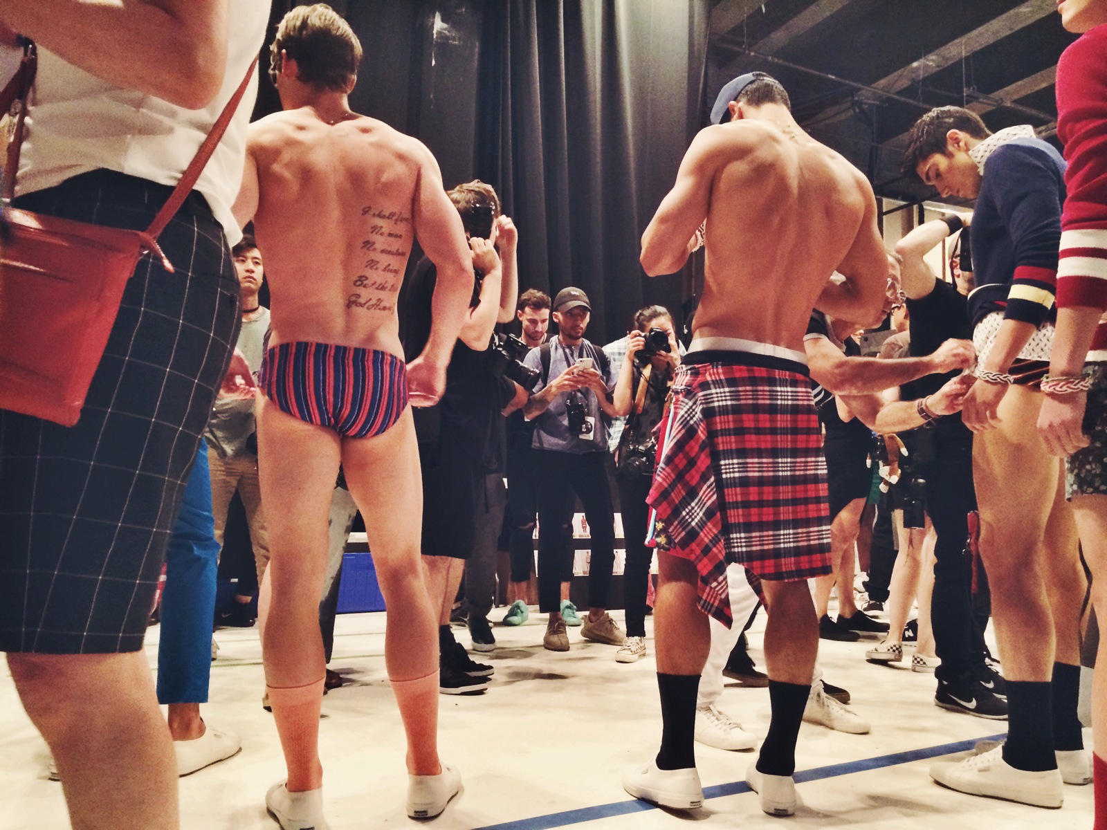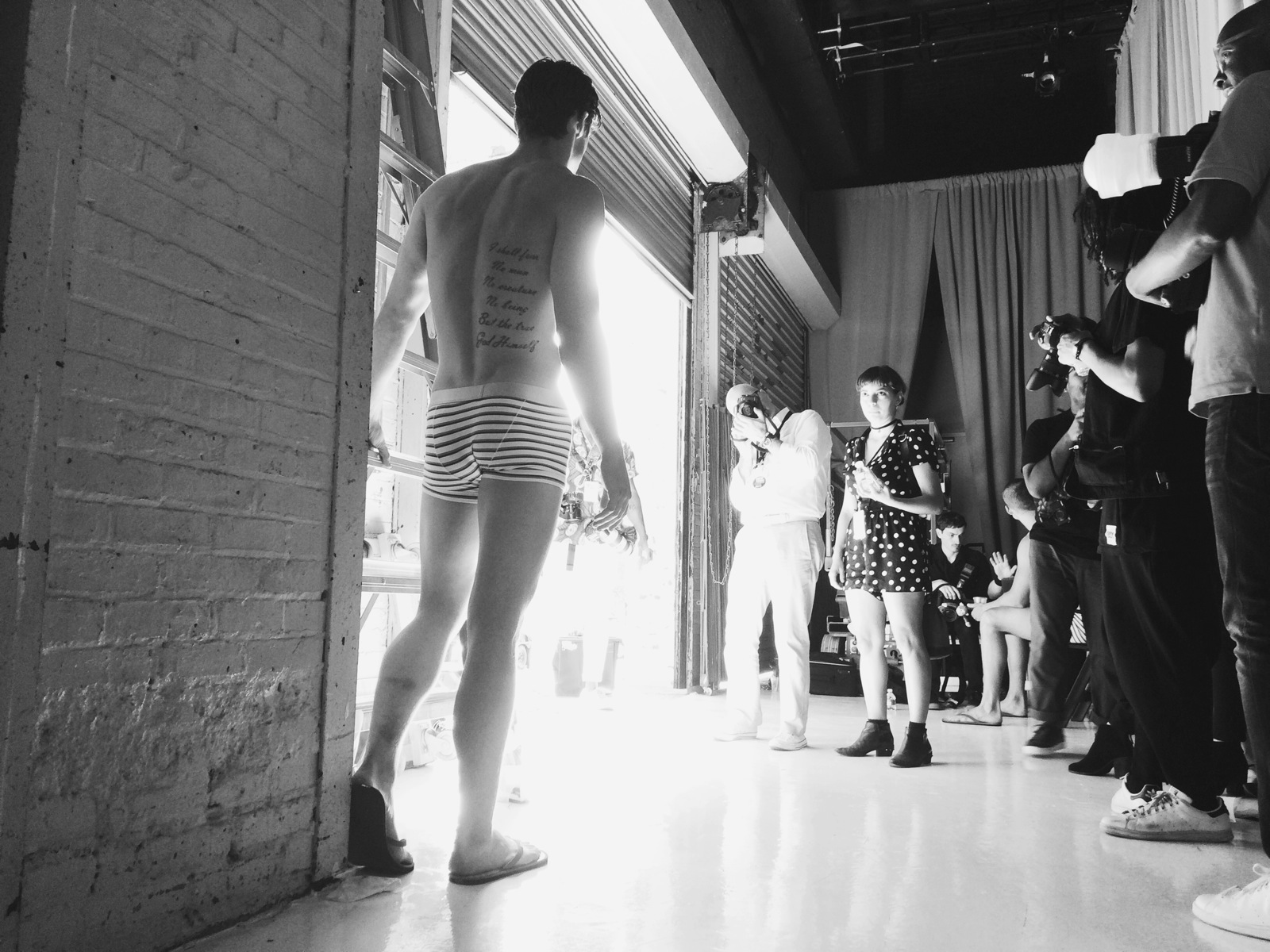 Parke & Ronen recently presented its spring-summer 2017 collection during New York Fashion Week: Men. Designers Parke Lutter and Ronen Jehezkel reimagined the Ivy League jock for their playful outing. Bright colors and varsity style came together for the showing. Photographer Nikolai de Vera was on hand to capture a behind the scenes look at the show via his iPhone.