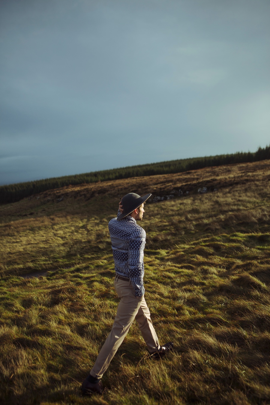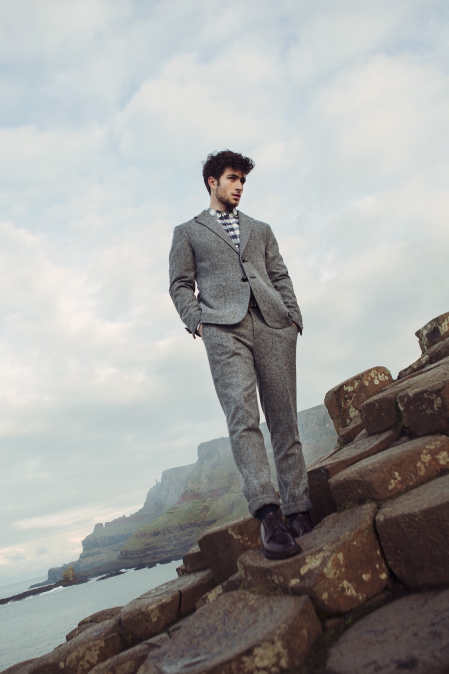 Texture comes into play as rock formations and the structure of landscapes act as muse. Speckled trousers, vests and crewneck sweaters contribute to a smart collection. Embracing the classics, hero pieces include oversized herringbone outerwear, chambray oxfords and sporty pullovers.