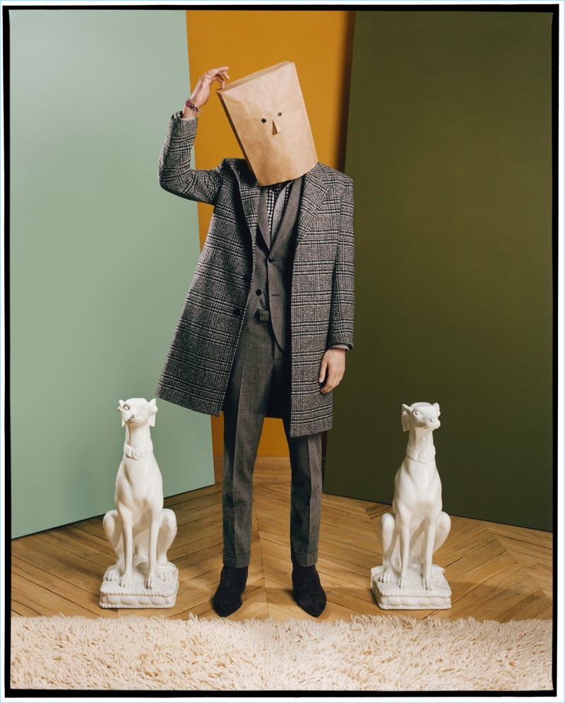 Paul Smith serves up quirky antics for its fall-winter 2017 campaign. The English brand covers the faces of models with paper bags. However, we do get a glimpse at George Barnett and Serge Rigvava. The models connect with photographer Nick Chard for the advertisement. Meanwhile, stylist George Sagar demonstrates Paul Smith’s sartorial edge with a juxtaposition of the label’s fun prints.