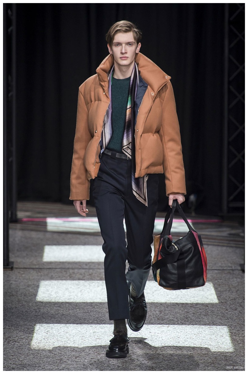 More streamlined than usual, Paul Smith approached fall with a precise vision for his man, unveiling a lineup of long, boxy coats, paired with fitted crewneck sweaters and lean trousers. Mixed among suits showcasing relaxed tailoring were fur coats for the ultimate luxe statement, which also alluded to an inner rock star. Among the prints used this season, Smith was inspired by the work of Bauhaus artists Josef and Anni Albers, delivering quite the graphic pull.