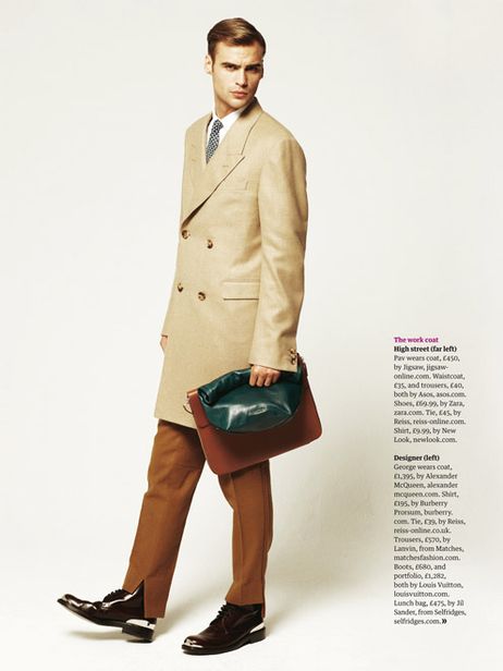 The Warm Front–Select models Pavel Baranov and George don winter coats for a story in Guardian magazine. Photographed by Sven Jacobson with styling by Simon Chilvers, the handsome pair are clad in pieces that encompass a range of casual and formal articles, featuring the likes of a militant Prada.