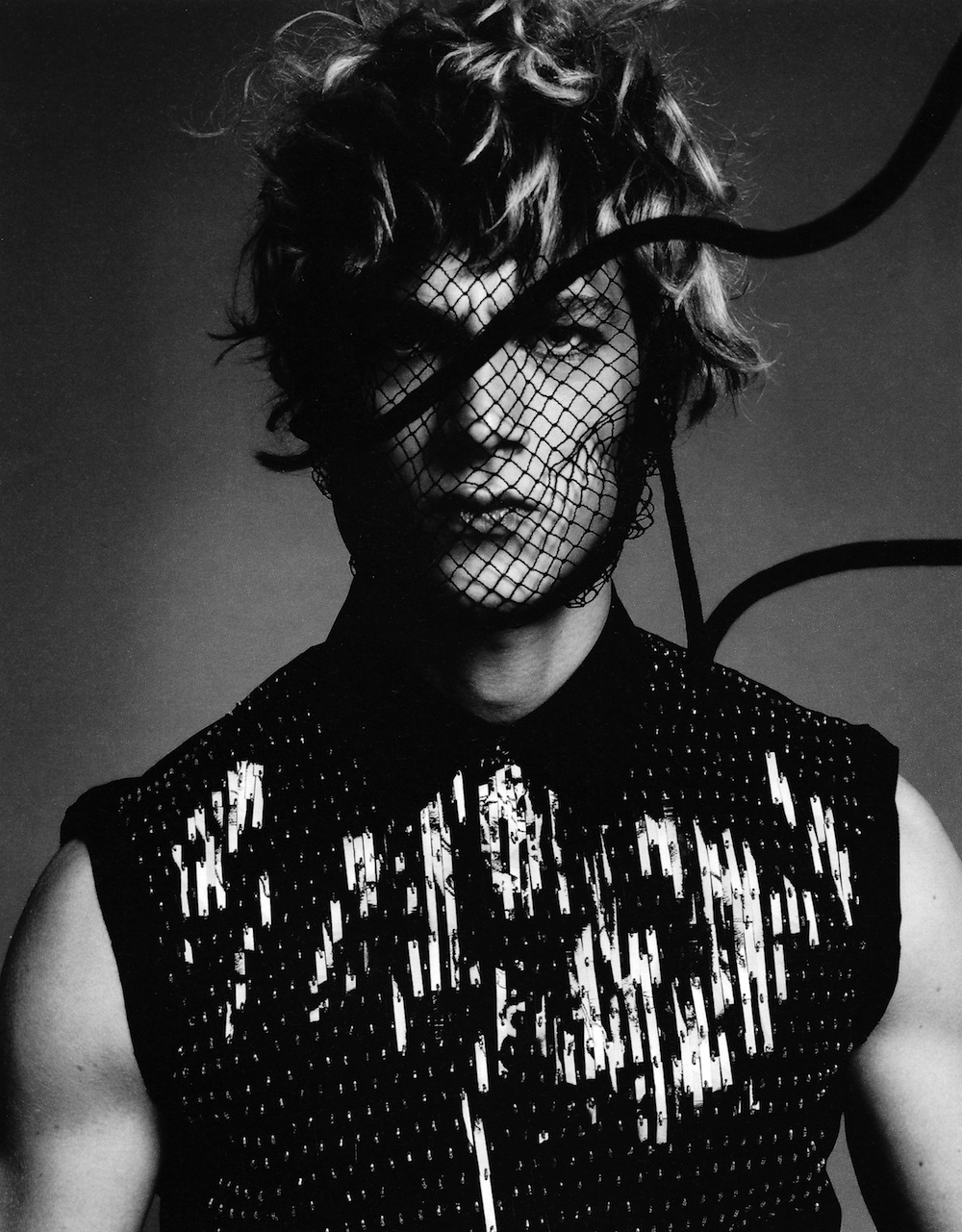 Noir–Re:Quest model Pedro Bertolini is one of the many faces captured by Paola Kudacki for a massive spread, focused on the spring collections, published in the latest issue of Hercules. Styled by Francesco Sourigues, the blond model wears, with a mysterious charm, Dsquared² and Saint Laurent’s spring designs. Playing with the contrast between black and white, Pedro showcases sequined shirts, leather trousers and printed shirts, proving that even the simplest colors can be updated in a fashionable way. / Photography assistance by Clay Gardner and Yoo Sun Maru. Styling assistance by Adrian Manuel and Ben Perreira. Hair by Amy Farid. Makeup by Maki H.