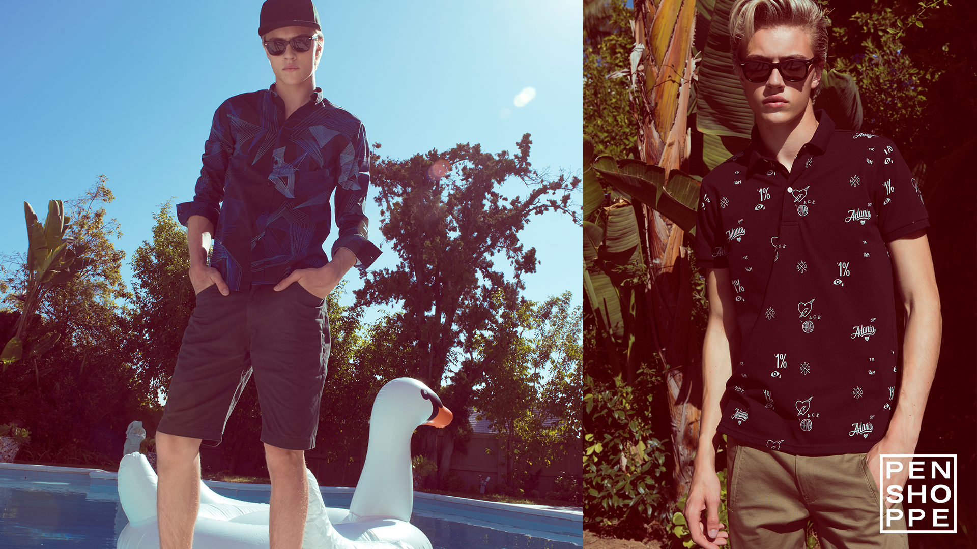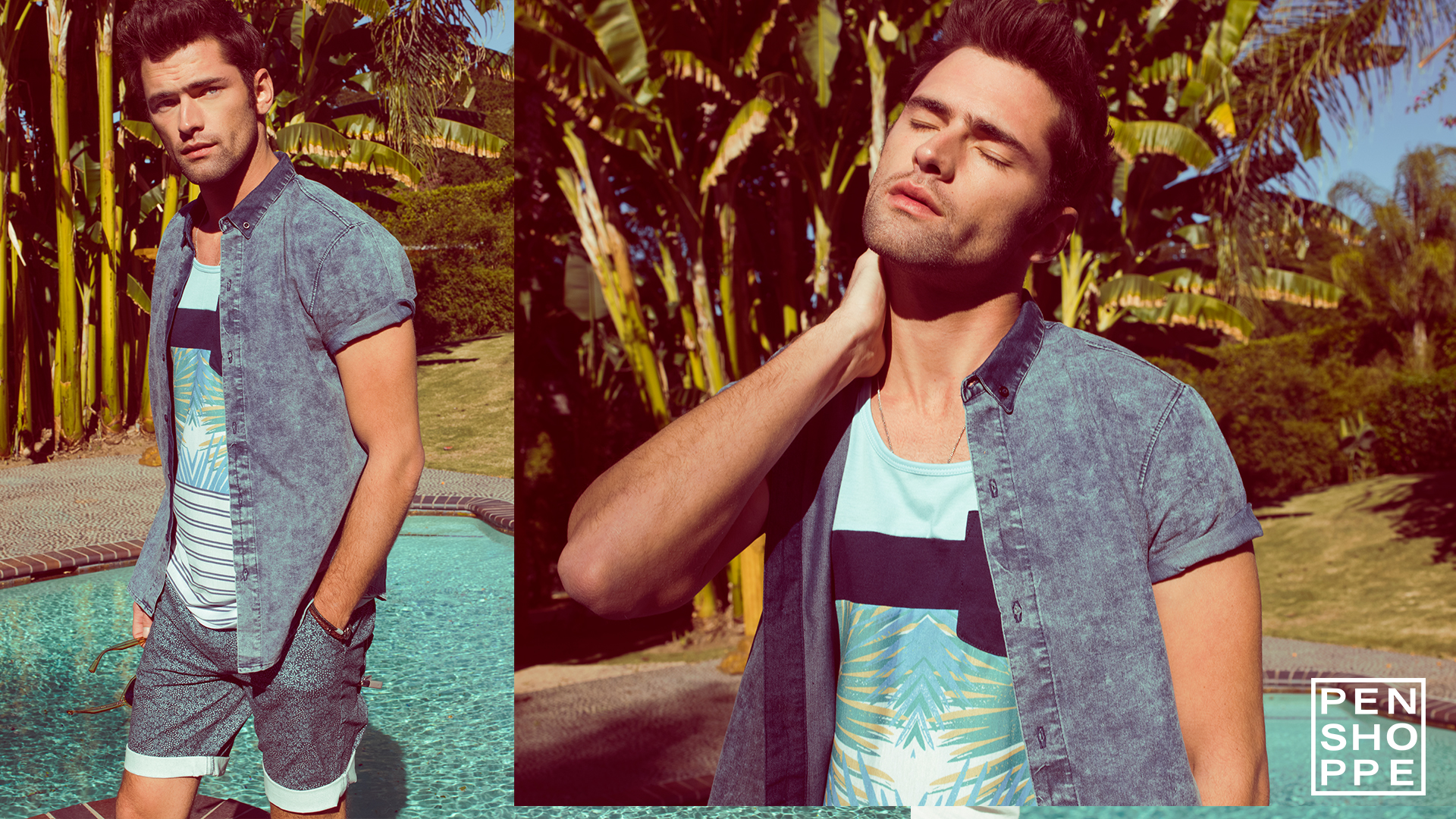 American models Sean O’Pry and Lucky Blue Smith are back in the spotlight as they reunite with Penshoppe for the brand’s summer 2016 campaign. Appearing in relaxed imagery, the pair take in a laid-back day poolside. Penshoppe showcases patterned swimwear alongside casual staples. Graphic tops, lightweight tanks and short-sleeve shirts come together for the occasion.