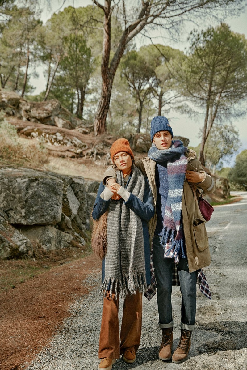 Dressed for the cold, Charlotte Carey Tampubolon and Oscar Kindelan come together in warm layers from Pepe Jeans.Pin