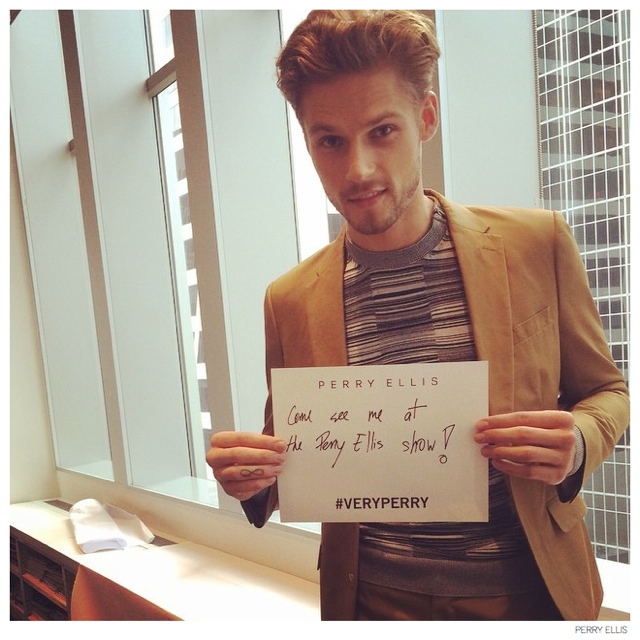 Fashion Week Prep-Perry Ellis prepares for its return to New York Fashion Week and a runway debut from creative director Michael Maccari. In anticipation of the main event, Perry Ellis takes to its Instagram with an image of model muse Mikus Lasmanis, fabric samples and sketches of the upcoming spring 2015 collection. Perry Ellis’ show is on September 4th.