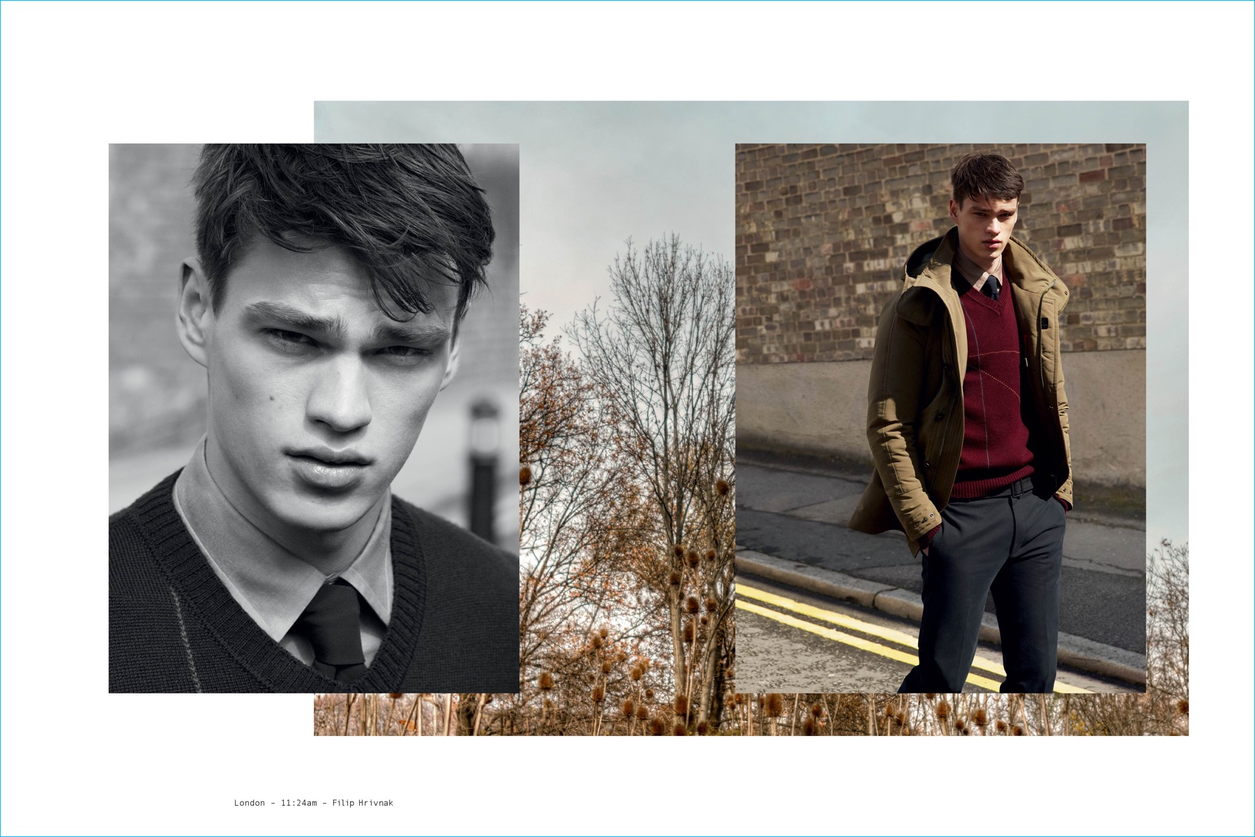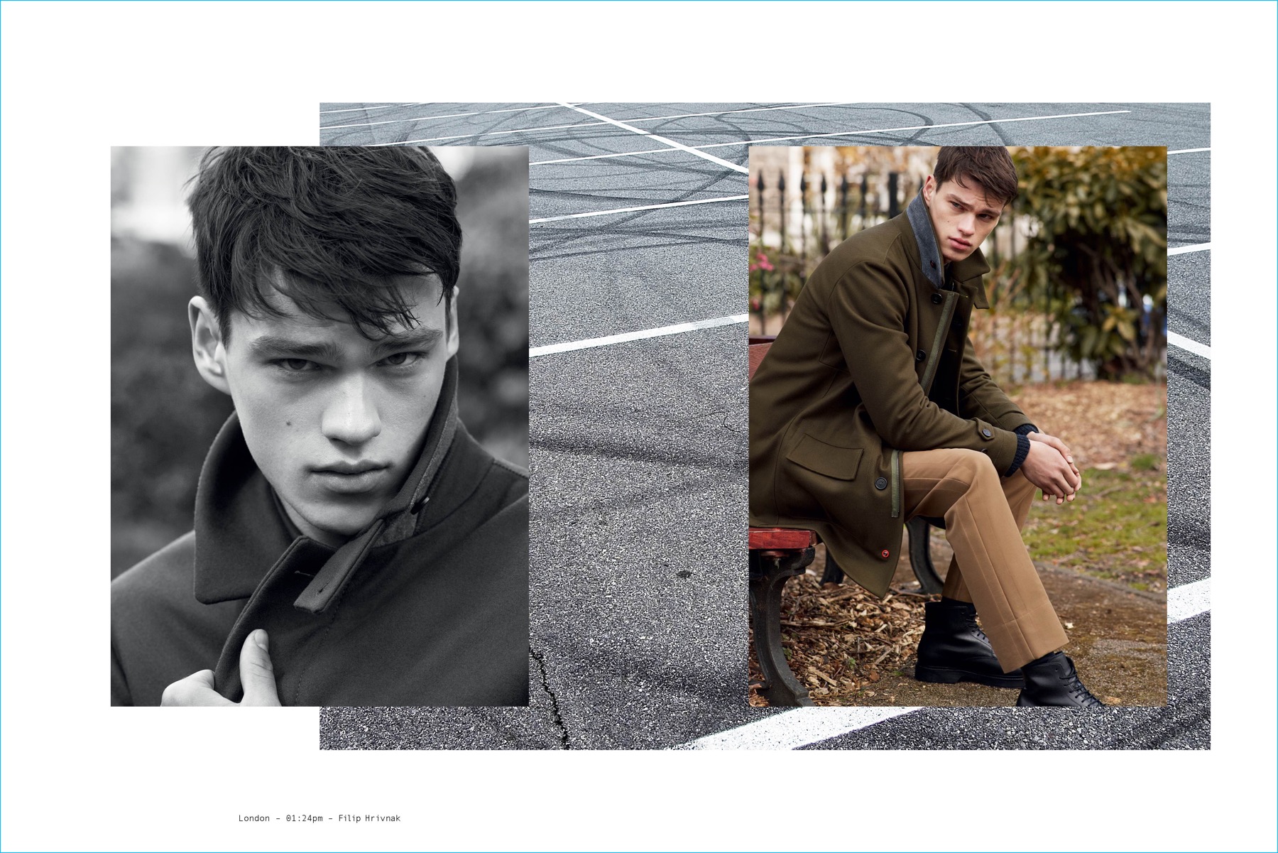 Italian brand Peuterey takes its collection to London for its fall-winter 2016 campaign. Model Filip Hrivnak reunites with photography duo Mert & Marcus for the occasion. Art director Giovanni Bianco centers the narrative around #realitytelling with an aim to place Peuterey’s clothes in the context of real life. Juxtaposing the campaign’s urban setting with a rural atmosphere, the outing features an everyday wardrobe styled by Tom Van Dorpe. Peuterey’s strength in outerwear is spotlighted for the advertisement with utilitarian jackets and coats. / Hair by Sam McKnight. Makeup by Isamaya Ffrench.