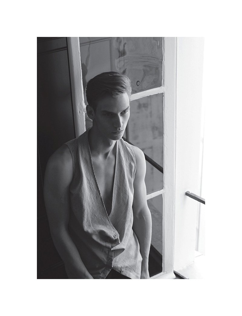 Philipp Bierbaum is photographed by Justin Wu for a clean black and white story, appearing in the pages of Dtours[paper]. Exhibiting a silent confidence, the Nathalie model is outfitted by Sophie Ruthensteiner.