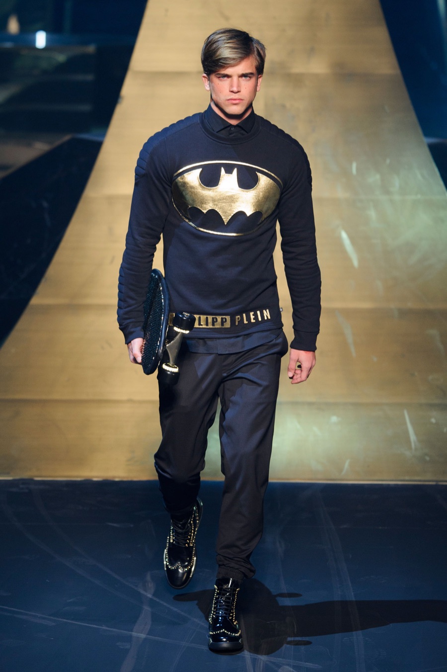Between The Avengers and Batman v Superman: The Dawn of Justice, superheroes are in high demand, so it’s no surprise that designer Philipp Plein looked to the Marvel and DC universes for inspiration. However, given Plein’s dark streetwear aesthetic, perhaps he should have focused on the villains. Dressed in head to toe black, often topped off with a fedora and adorned in leather or studs, models took to the catwalk.