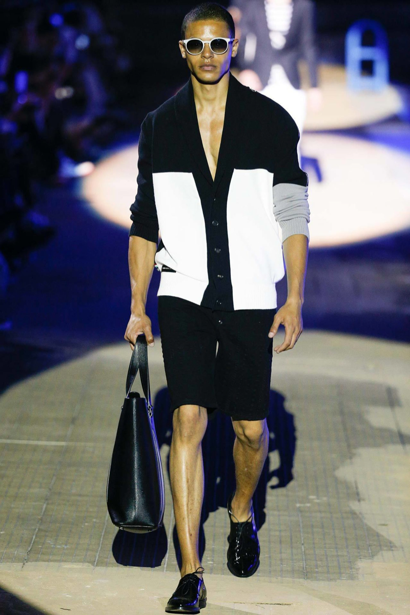 Philipp Plein Spring/Summer 2015–Designer Philipp Plein staged a flashy show for his spring/summer 2015 collection. Bringing back to life a public swimming pool long forgotten, Plein delivered his latest range poolside. Hitting the catwalk to the sounds of Theophilus London, nautical looks were delivered with the addition of the designer’s signature flamboyance. Here, ripped denim coexisted with emblem covered robes and piped tailored jackets. Striped v-necks and denim jackets also made the collection, contributing to a casual season with a bold voice.