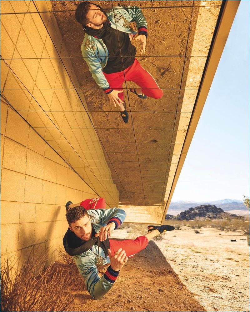 C for Men taps Aaron Taylor-Johnson for a special cover shoot for its spring 2017 issue. Taylor-Johnson’s wife, Sam Taylor-Johnson photographs him in the California desert. Sporting a designer wardrobe, the 26-year-old actor wears brands such as Dries Van Noten and Bottega Veneta.