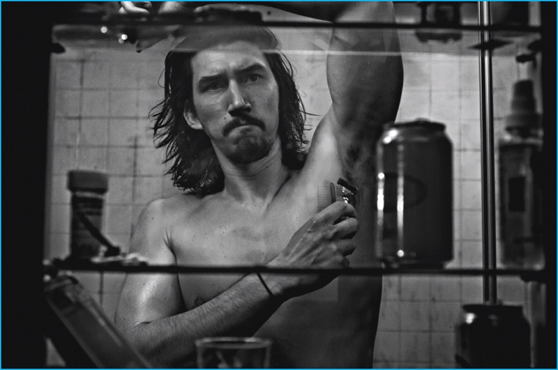 Starring in a grungy photo shoot, Adam Driver shaves his arm pits for the pages of Interview magazine.Pin