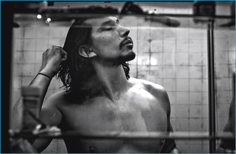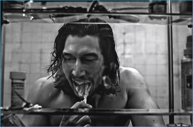 Taking a soak, Adam Driver appears in the December 2016/January 2017 issue of Interview magazine.